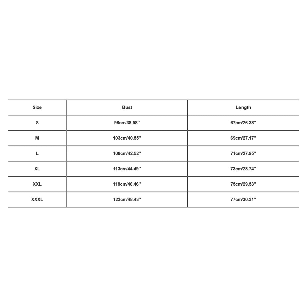 | Size:XXXL | Bust:123cm/48.43'' | Length:77cm/30.31'' |