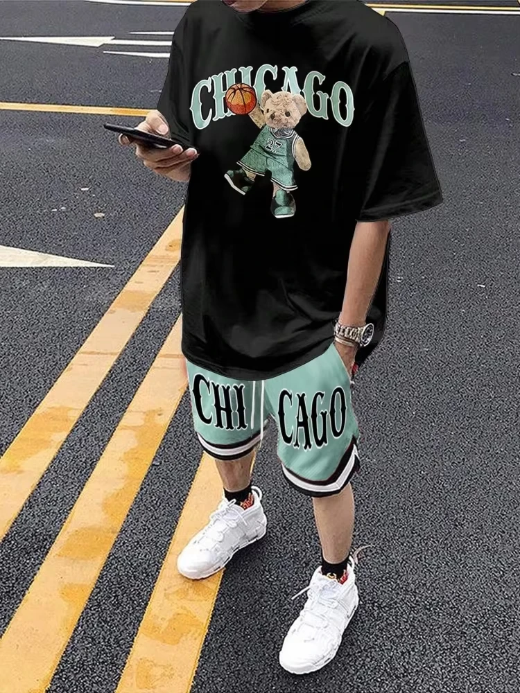 Add playful charm to your wardrobe with this Cartoon Bear 3D Printed Men’s 2-Piece Set, perfect for shopping and casual outings. Featuring a fun, urban-inspired short-sleeve round neck top and matching drawstring shorts, this set combines street style with everyday comfort. Made from breathable knit polyester with a standard thickness, it’s ideal for spring and summer wear. The elastic waist ensures a relaxed fit for all-day ease and effortless cool.