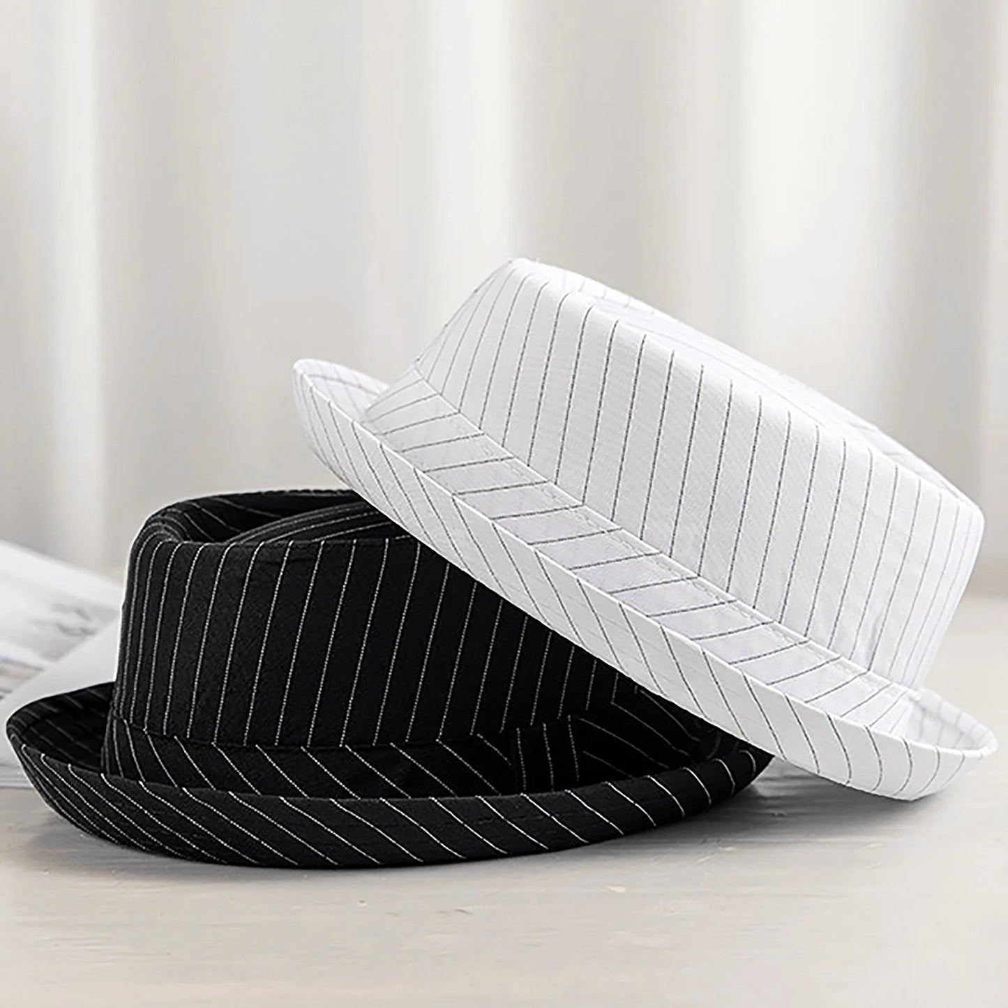 Casual Fashion Men Striped Short Hat Brim Fedoras Classic Neutral Soft Tweed Dress Hat Suitable for Camping and Hiking and fun