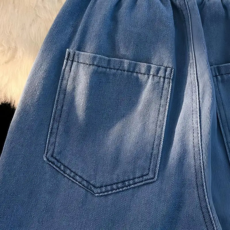 Casual Jeans With Pockets Summer Vintage Wide Leg Pant Drawstring Loose Trousers