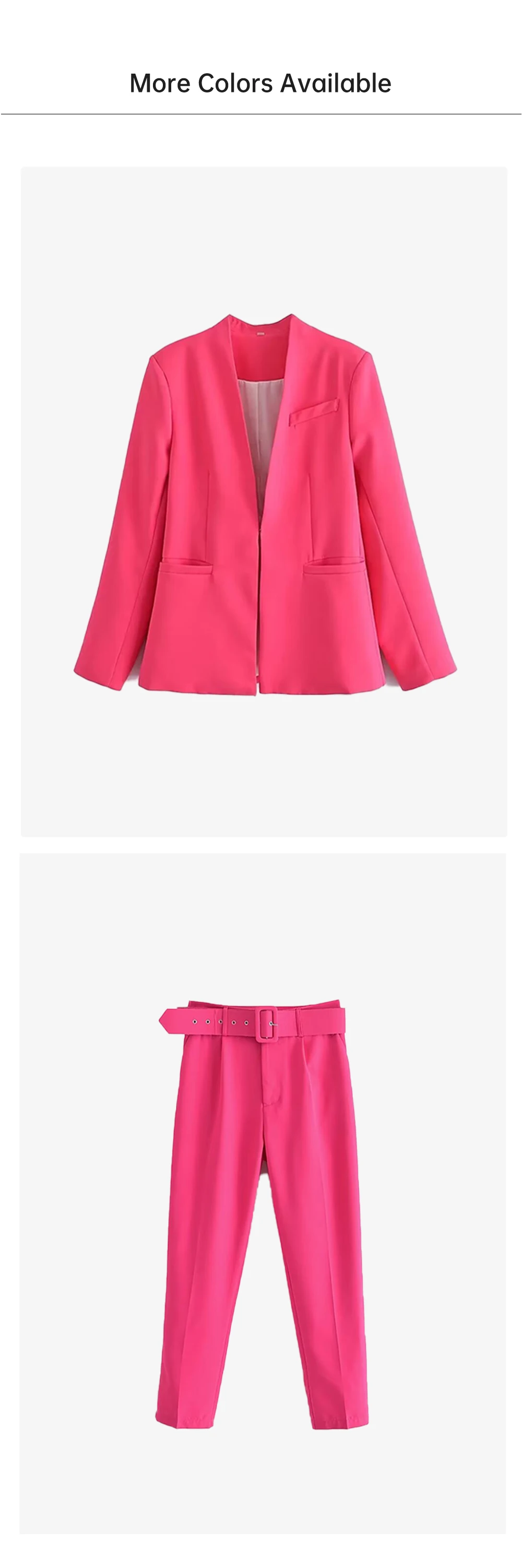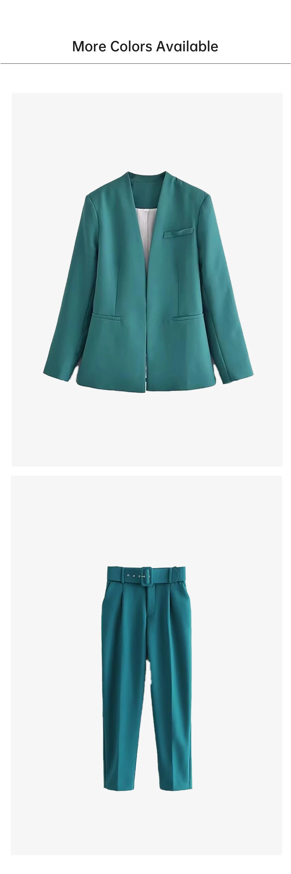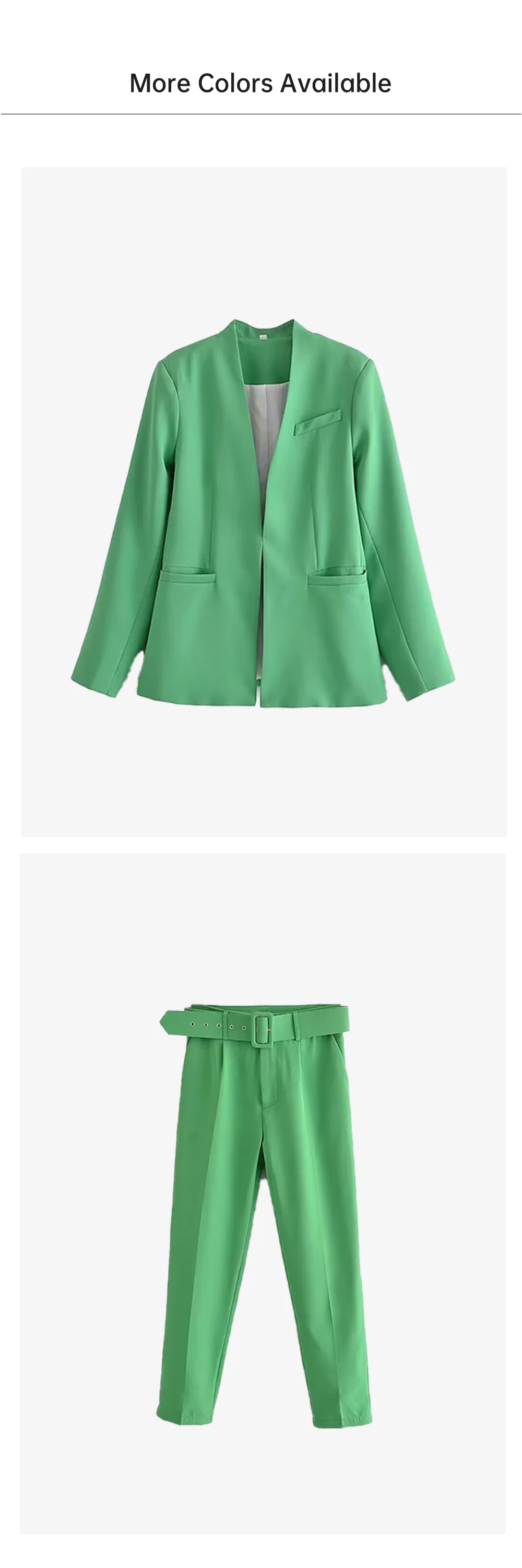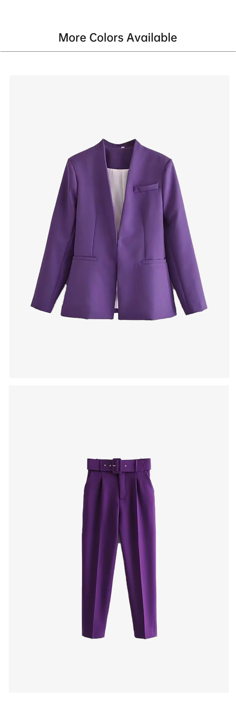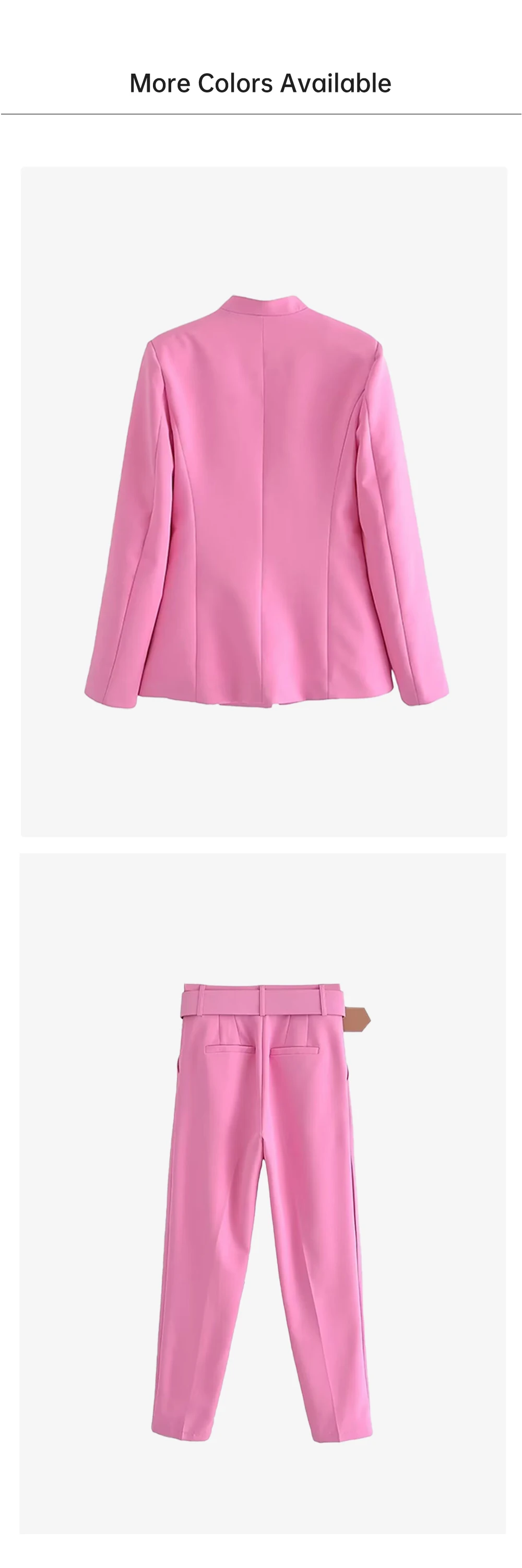 Step into effortless sophistication with this women’s two-piece casual suit set. Crafted from soft, non-stretch polyester, it features a notched collar blazer with a single-button closure and flattering straight cut, complete with a sash for added definition at the waist. The matching ankle-length pants with a zipper fly create a sleek silhouette, making this set perfect for both work and weekend wear. With its solid color design and timeless appeal, this outfit combines comfort and class in one chic ensemble.