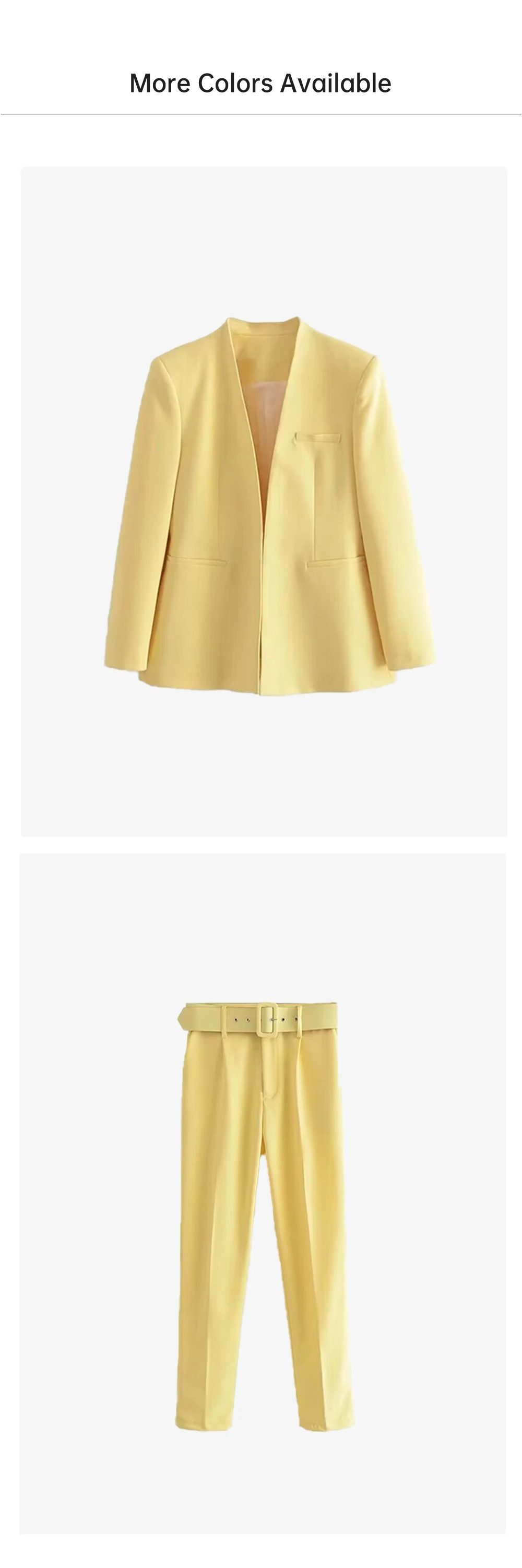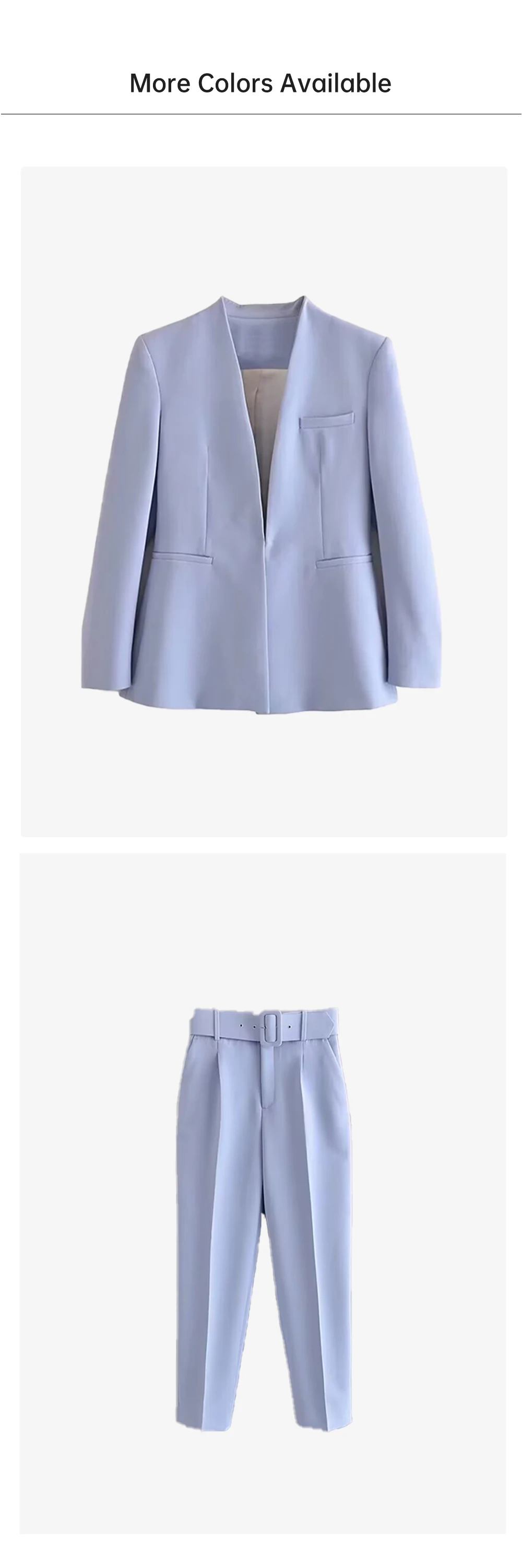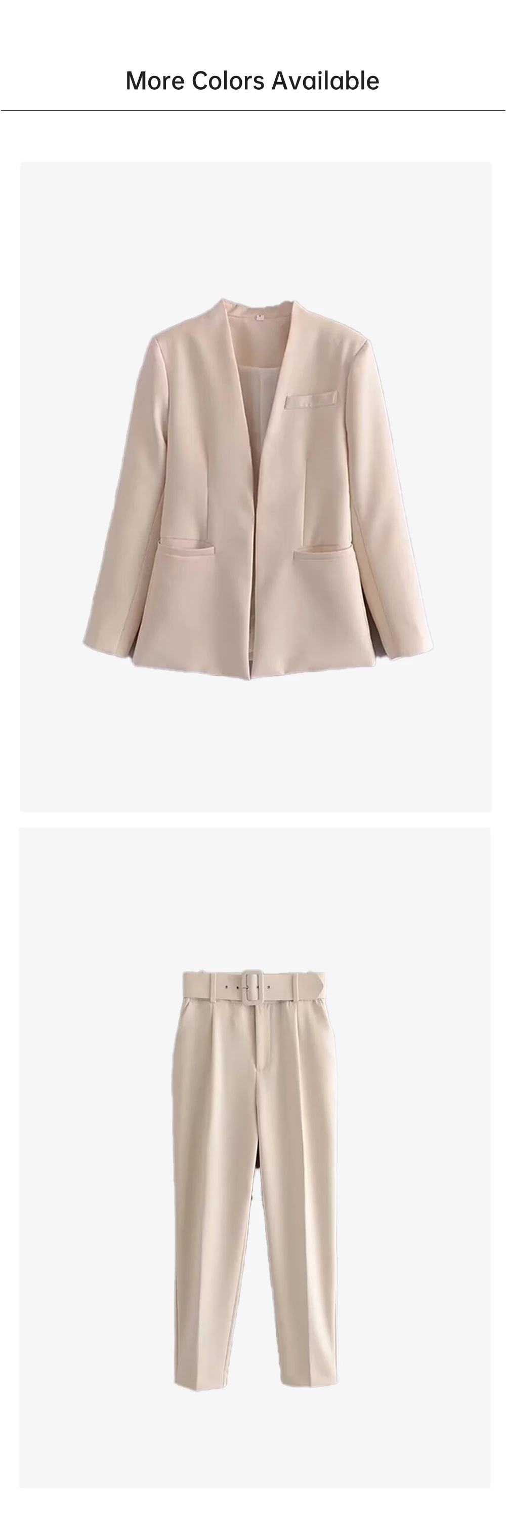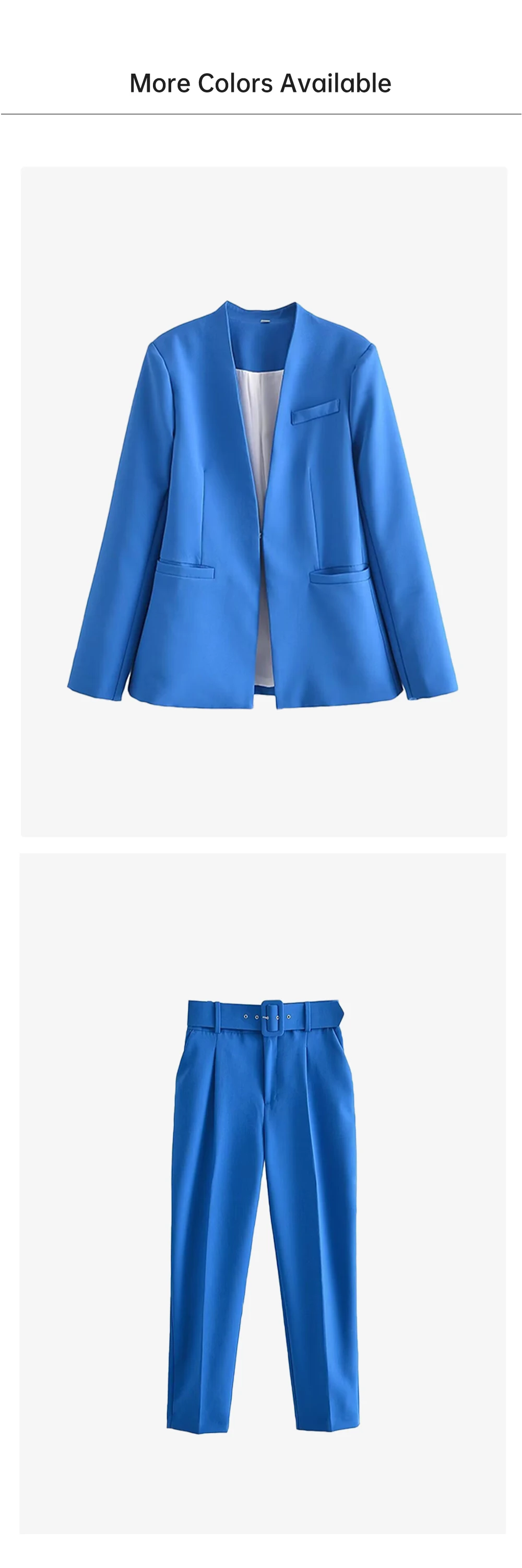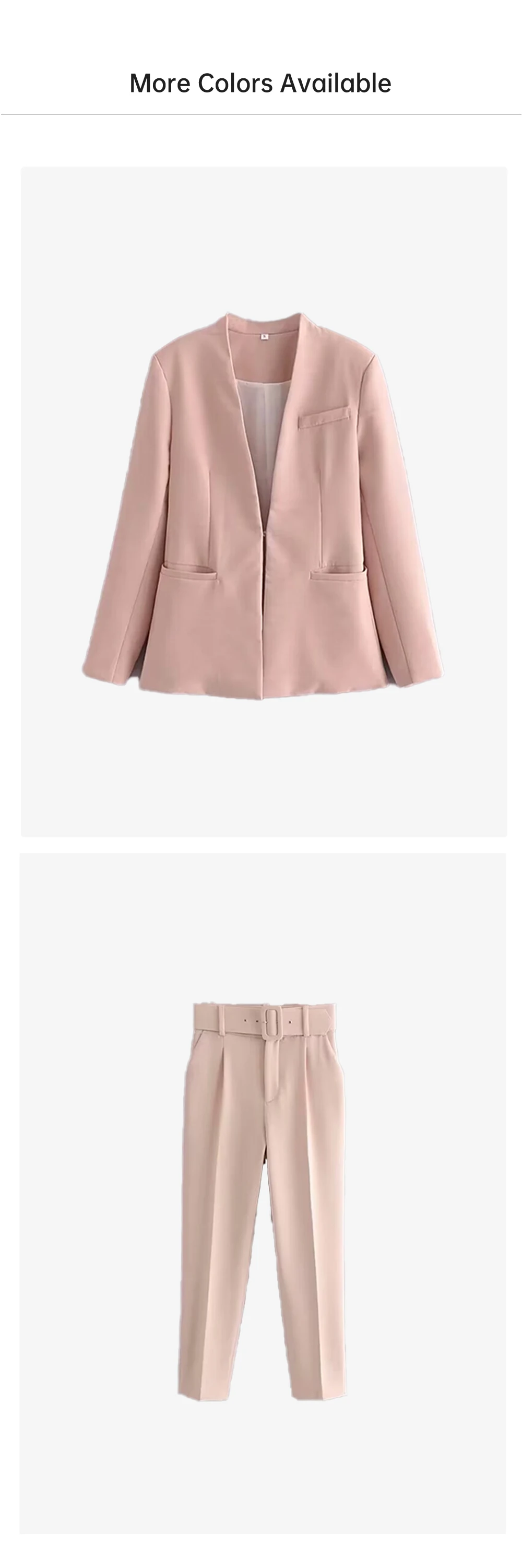 Step into effortless sophistication with this women’s two-piece casual suit set. Crafted from soft, non-stretch polyester, it features a notched collar blazer with a single-button closure and flattering straight cut, complete with a sash for added definition at the waist. The matching ankle-length pants with a zipper fly create a sleek silhouette, making this set perfect for both work and weekend wear. With its solid color design and timeless appeal, this outfit combines comfort and class in one chic ensemble.