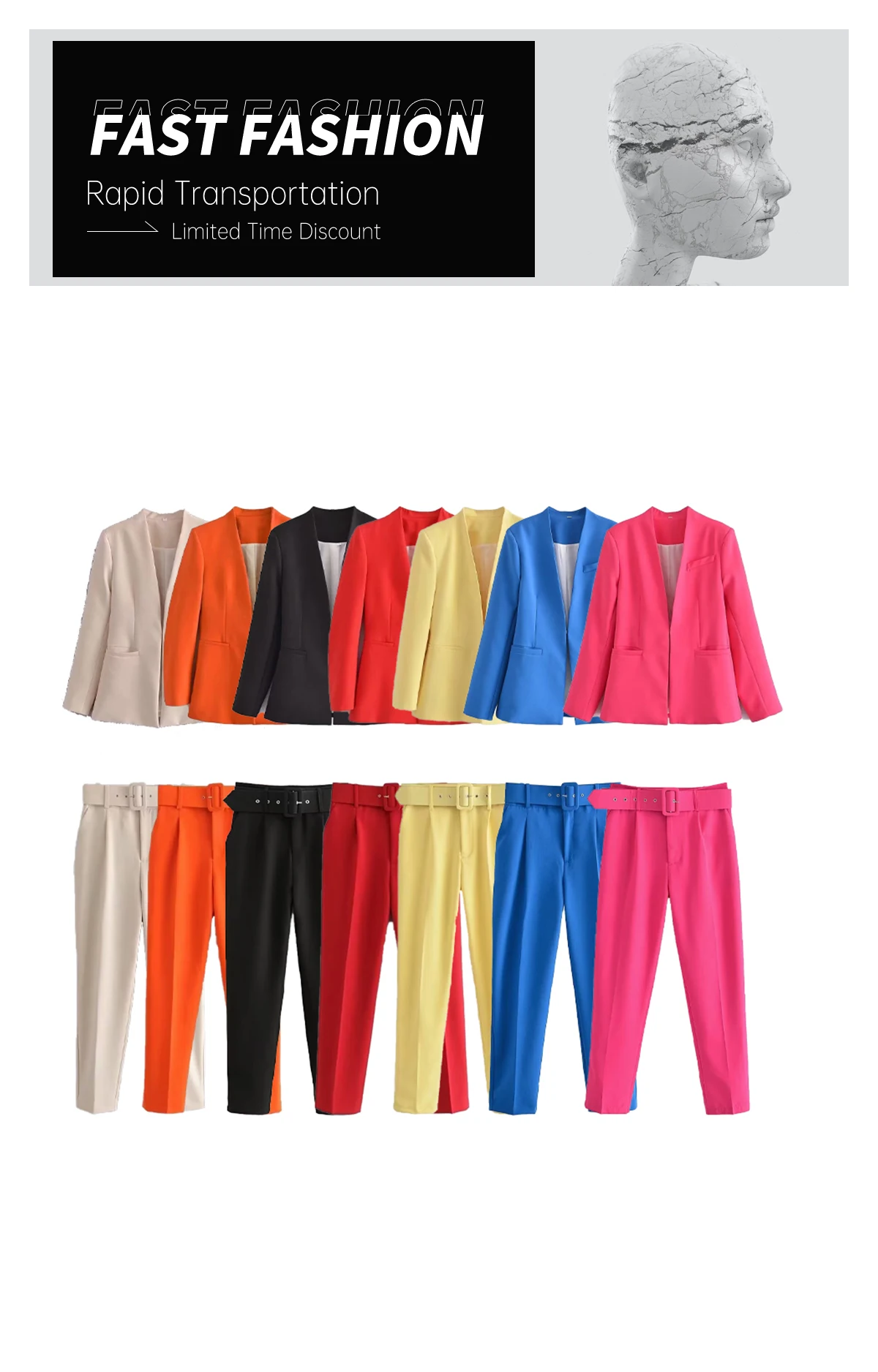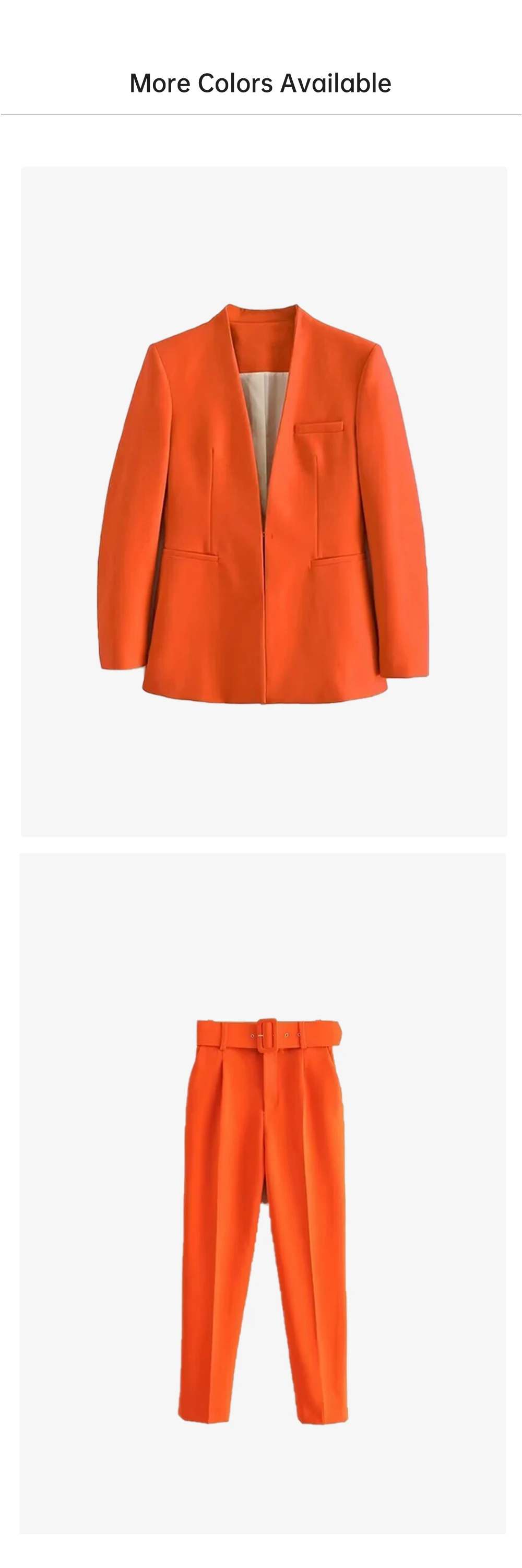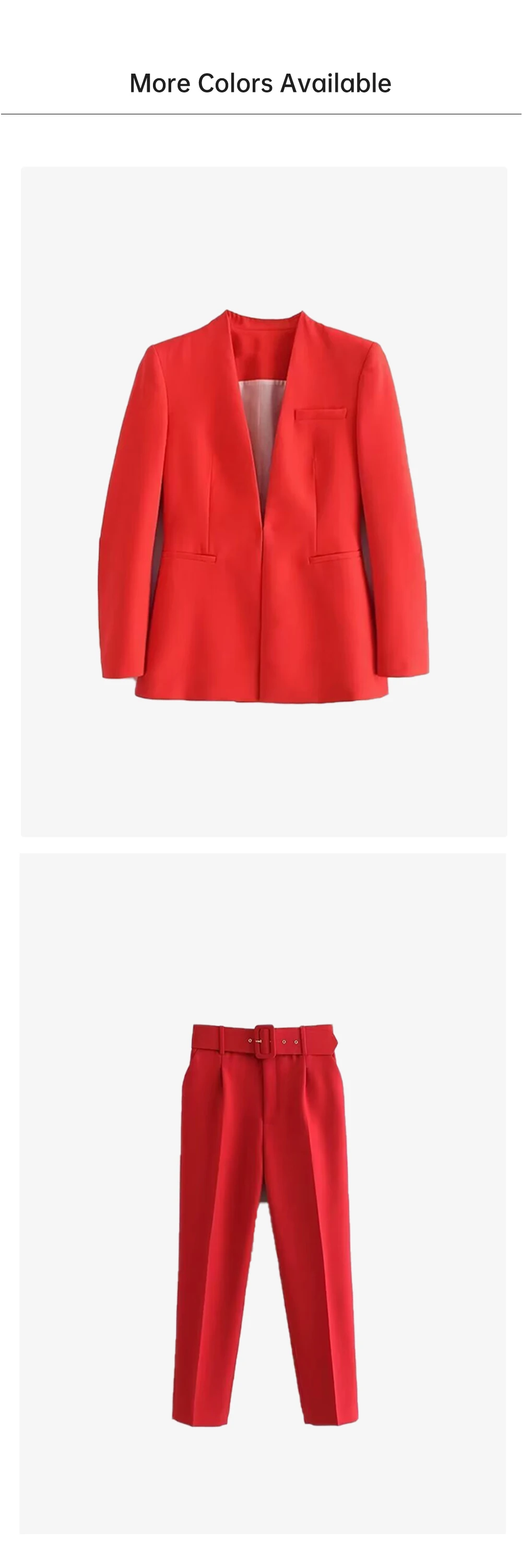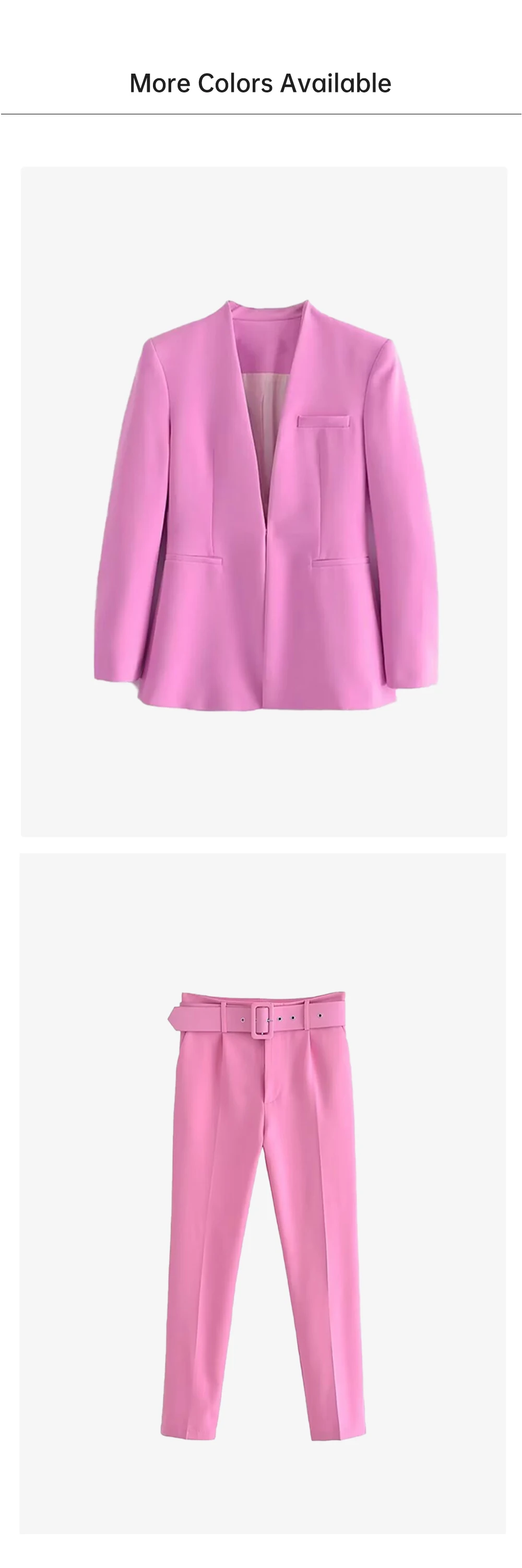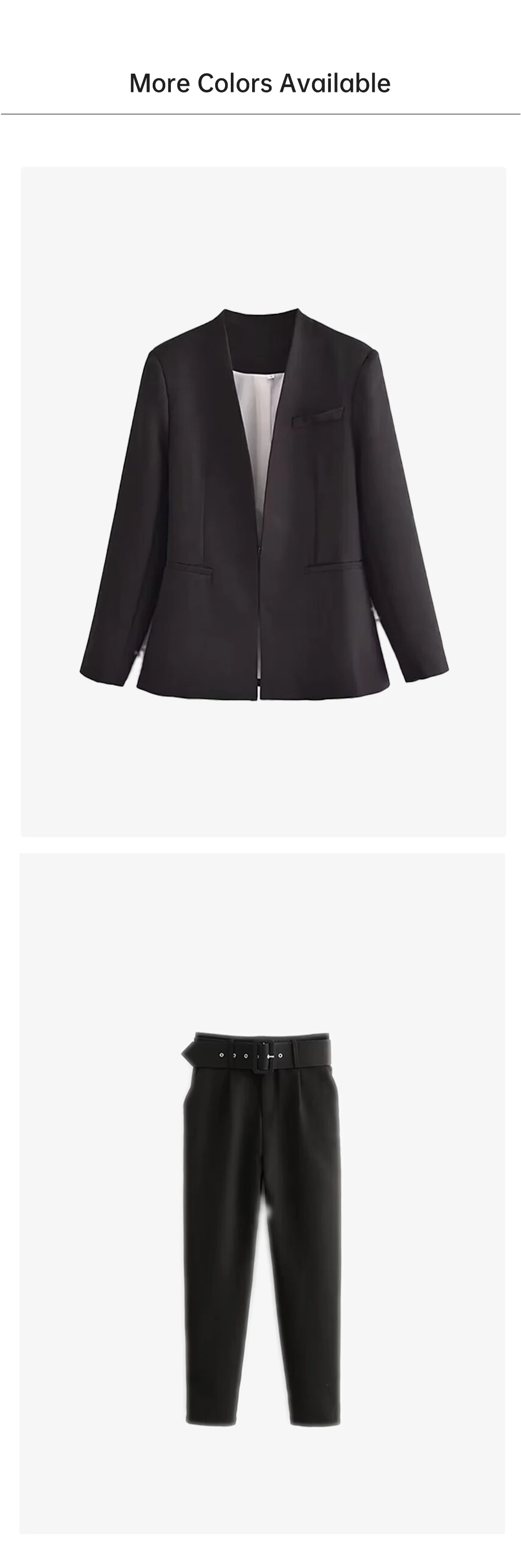Step into effortless sophistication with this women’s two-piece casual suit set. Crafted from soft, non-stretch polyester, it features a notched collar blazer with a single-button closure and flattering straight cut, complete with a sash for added definition at the waist. The matching ankle-length pants with a zipper fly create a sleek silhouette, making this set perfect for both work and weekend wear. With its solid color design and timeless appeal, this outfit combines comfort and class in one chic ensemble.