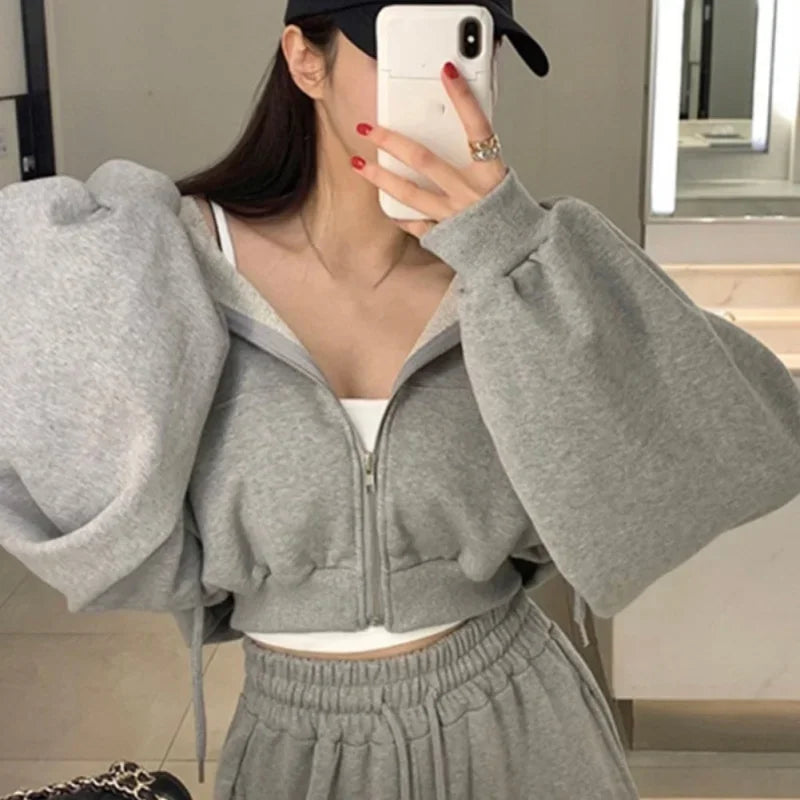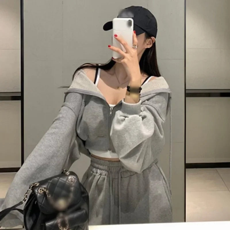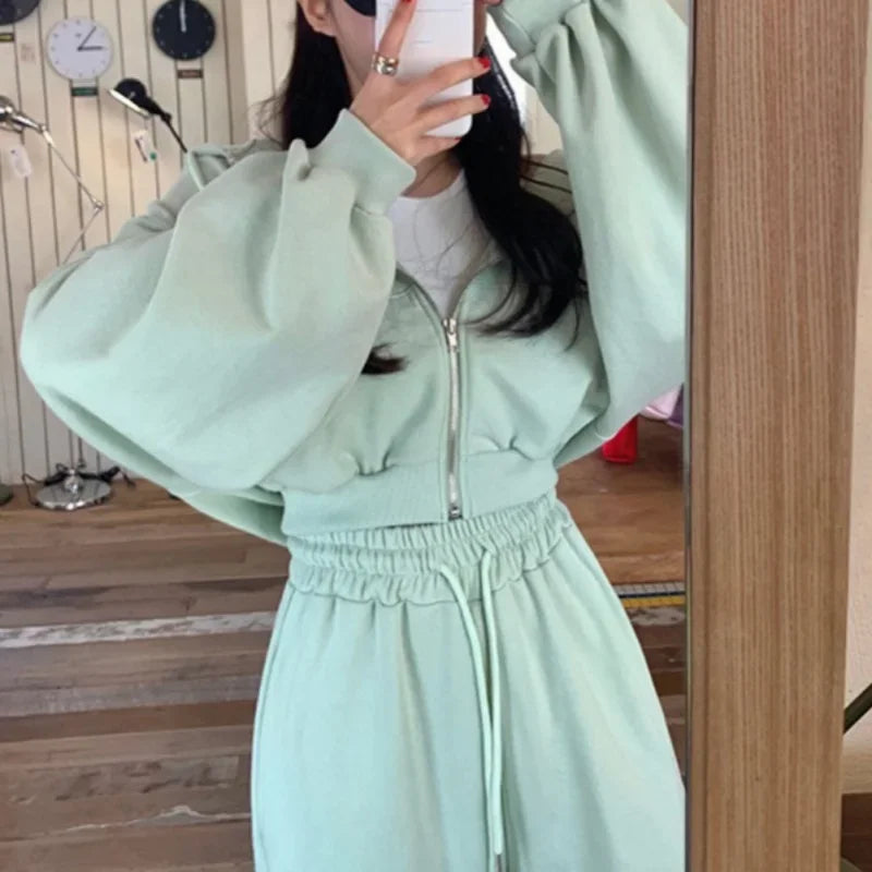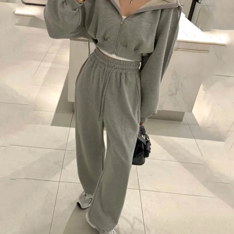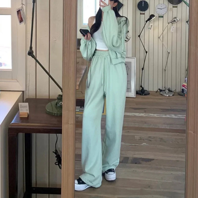 1.Product Name: CHIC Autumn Niche Temperament Hooded Long Sleeve Short Sweatshirt High Waist Tie Versatile Wide-leg Casual Pants M-2XL Size