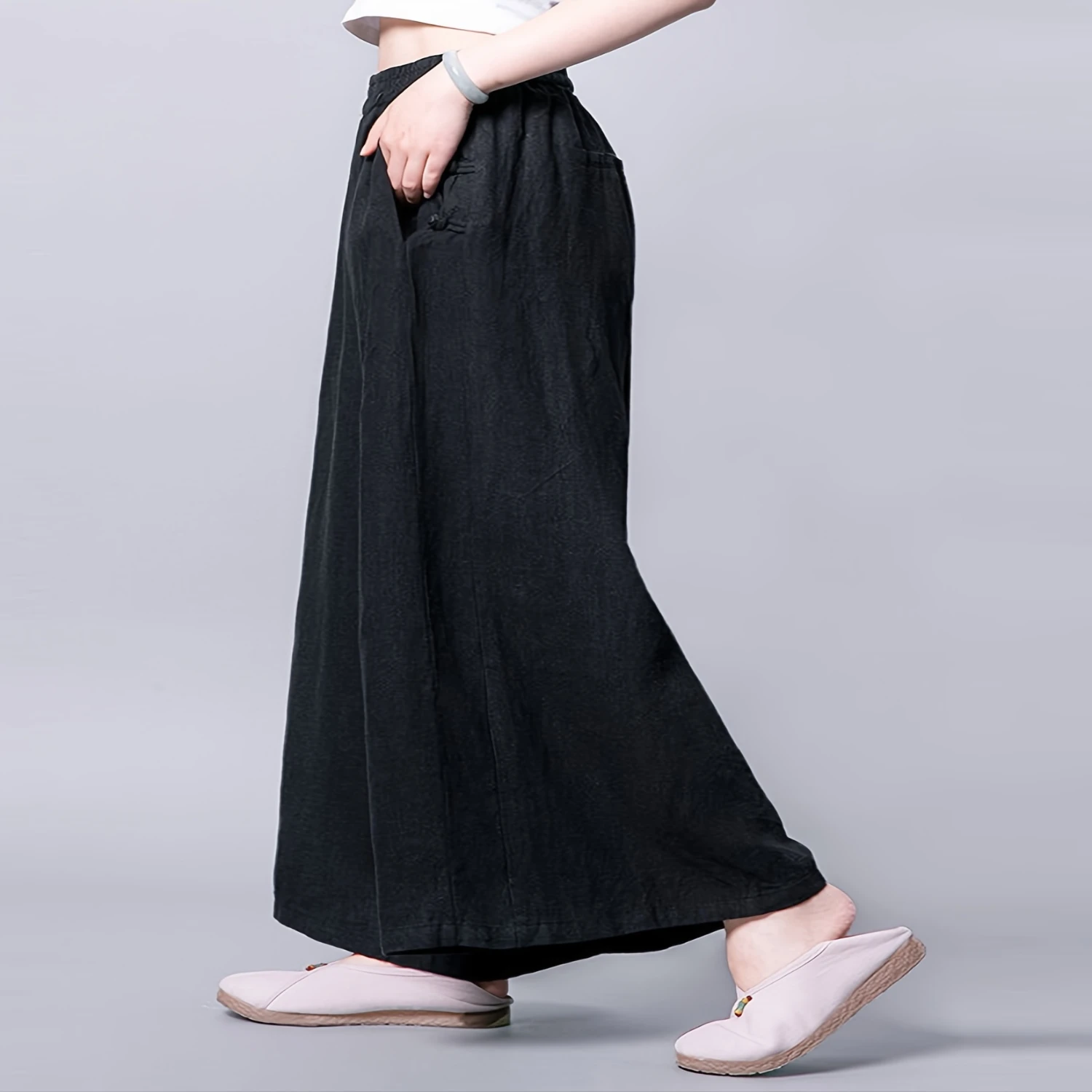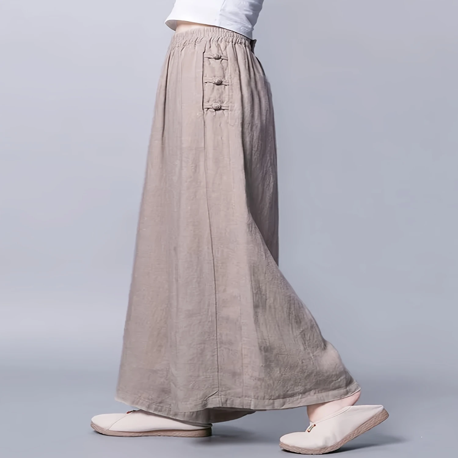 Embrace timeless elegance with these Chinese retro-style wide-leg pants. Crafted from breathable bamboo fiber, they offer a lightweight and comfortable fit, perfect for spring and summer. The high-waist design enhances the silhouette, while the flowy wide-leg cut adds a touch of sophistication. Ideal for casual outings, cultural events, or stylish everyday wear, these pants effortlessly blend traditional charm with modern comfort.