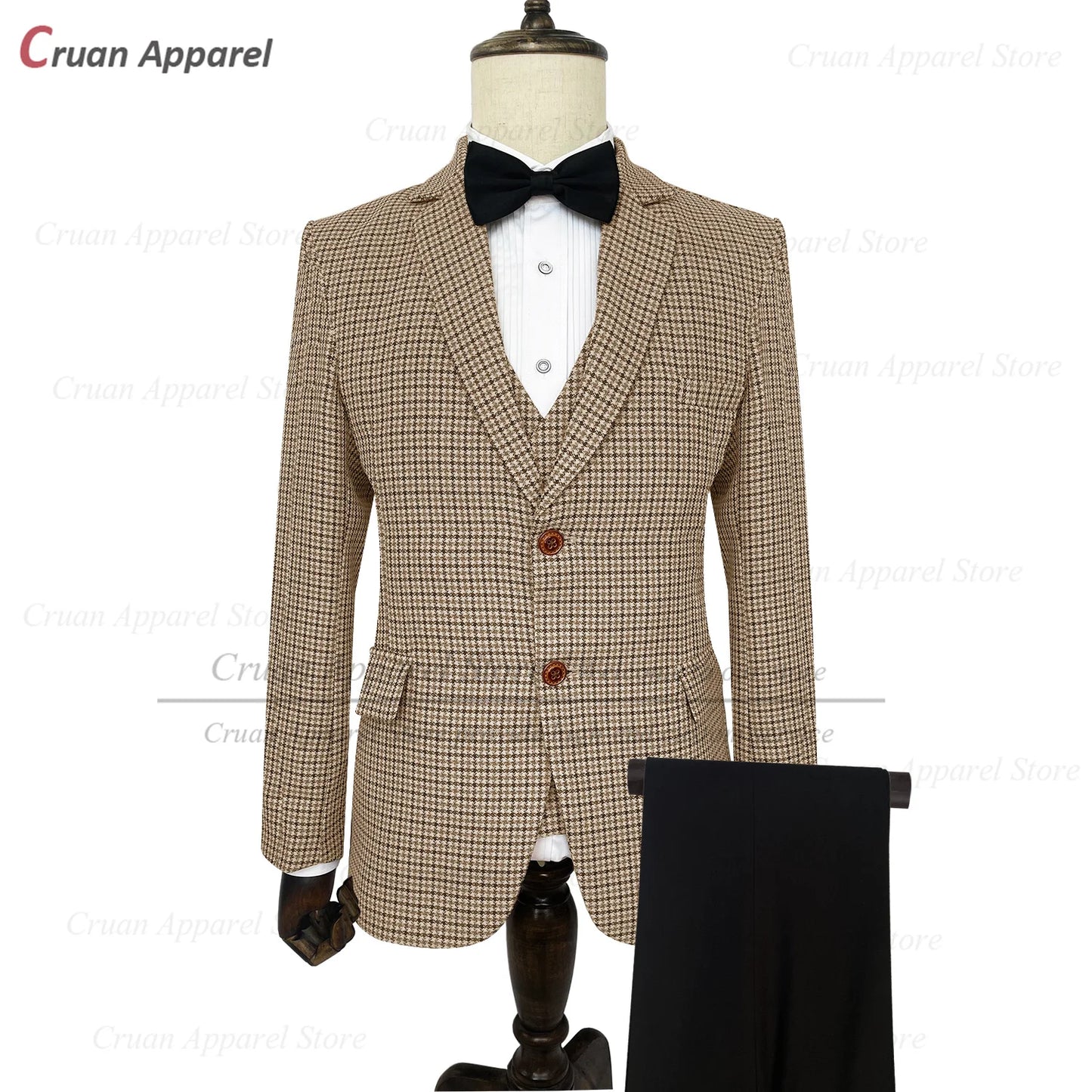 Classic Suit Sets For Men Fashion Checkered Blazer Vest Pants 3 Pieces Formal Party Tailor-made Elegant Slim Fit Costumes