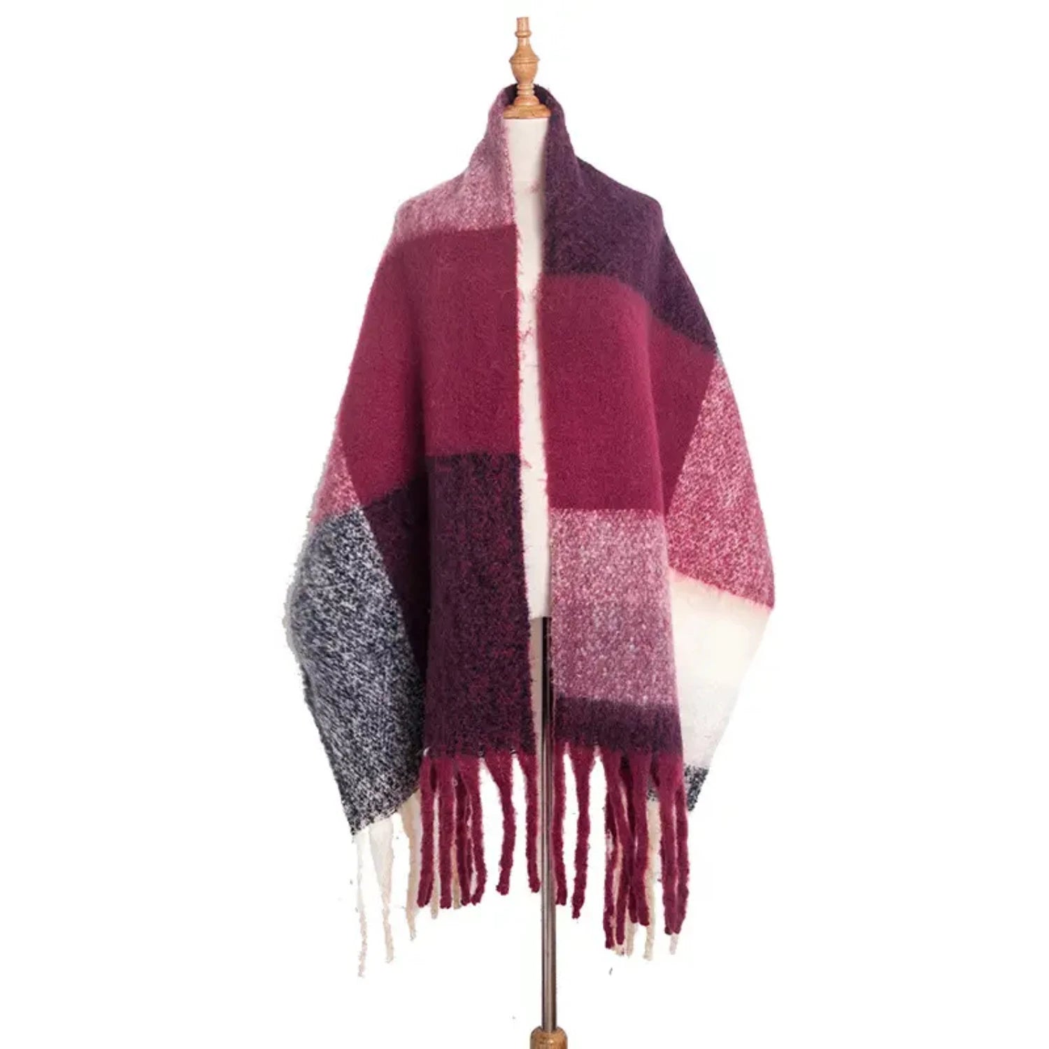 3. Elevate your winter wardrobe with our Classic Tassel Plaid Scarf, a versatile accessory that can be worn in multiple ways.
