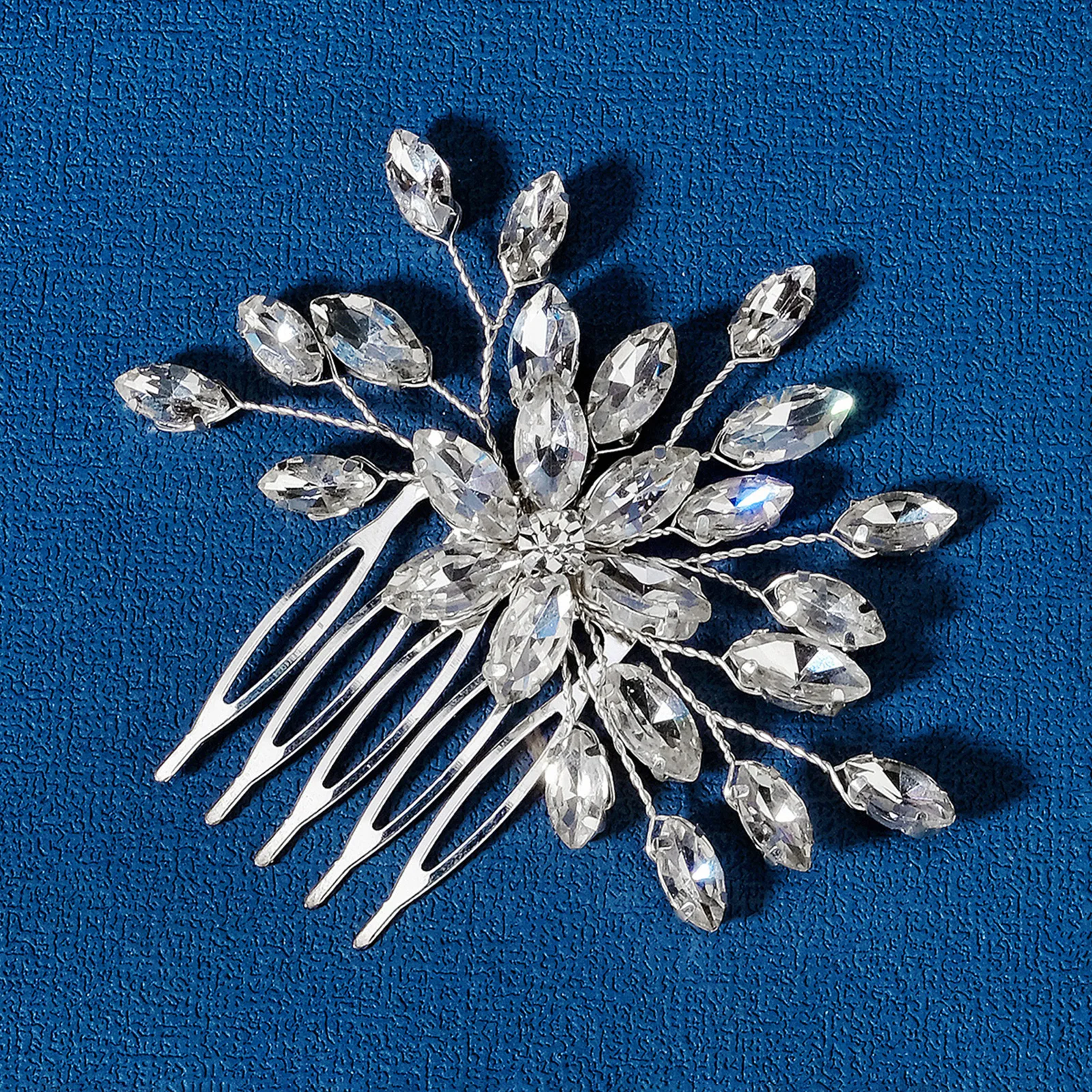 This Crystal Hair Comb is a stylish and trendy piece of head jewelry for women. Crafted with shimmering crystal and durable iron alloy, it adds a touch of sparkle to any bridal or formal look. Perfect as a headpiece, hair clip, or ornament, it's ideal for weddings, parties, or special occasions. A beautiful addition to any collection of women’s bridal hair accessories.