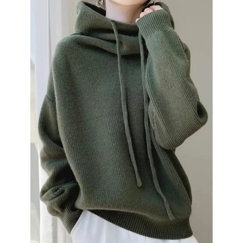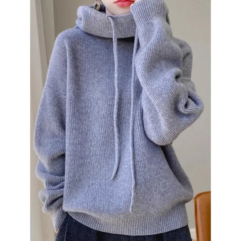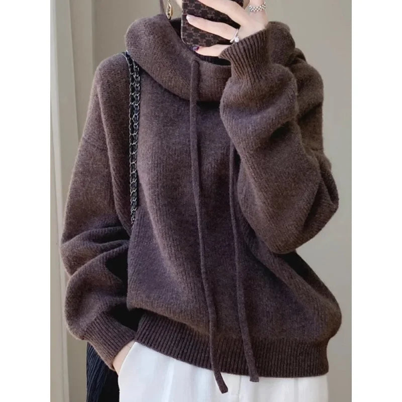Stay warm and stylish this winter with this hooded thickened knit top. Designed for comfort, it features a soft, supple texture and a cozy hood, perfect for chilly days. The slim-fit silhouette offers a flattering look while maintaining warmth, making it a versatile sweater jacket for everyday wear. Ideal for autumn and winter, this piece effortlessly combines functionality with seasonal fashion.