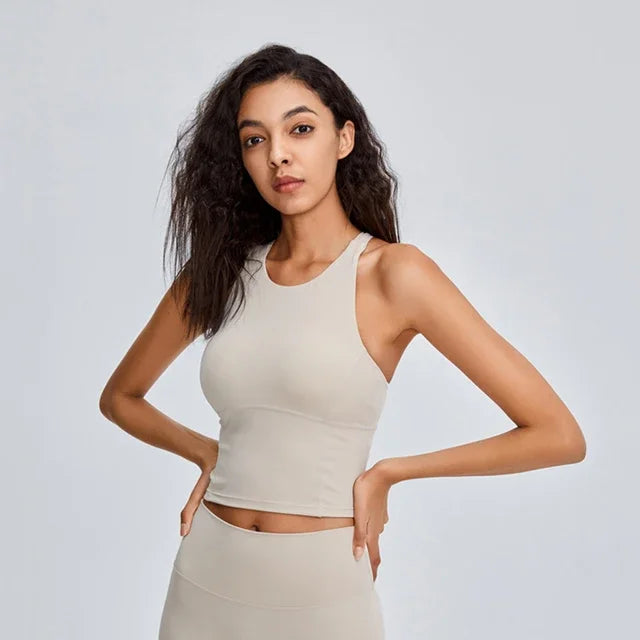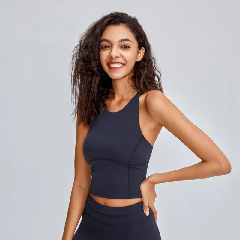 Comfy Cross Back Wide Strap Push-up Sports Bra Shock Proof Running Fitness Crop Top Crew Neck Padded Workout Yoga