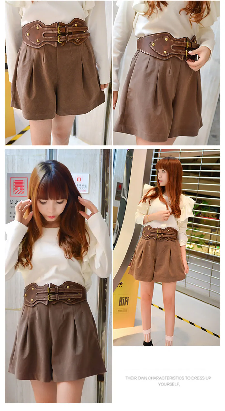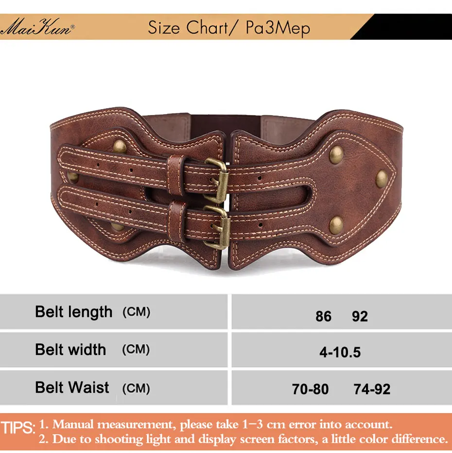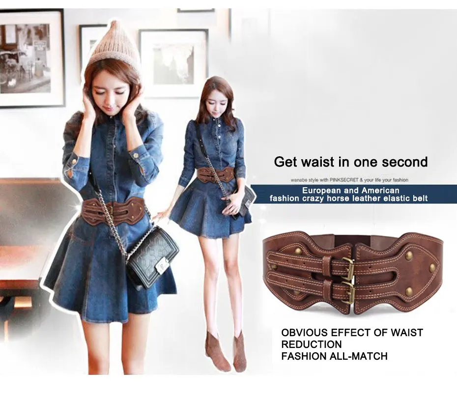 Make a bold fashion statement with this 15 cm wide Crazy Horse leather-style belt, featuring a double pin buckle and a flexible elastic design for a comfortable, cinched fit. Crafted from faux leather and metal, this solid-pattern girdle is perfect for layering over coats, dresses, or blouses—offering a flattering, all-match accessory for the modern woman.