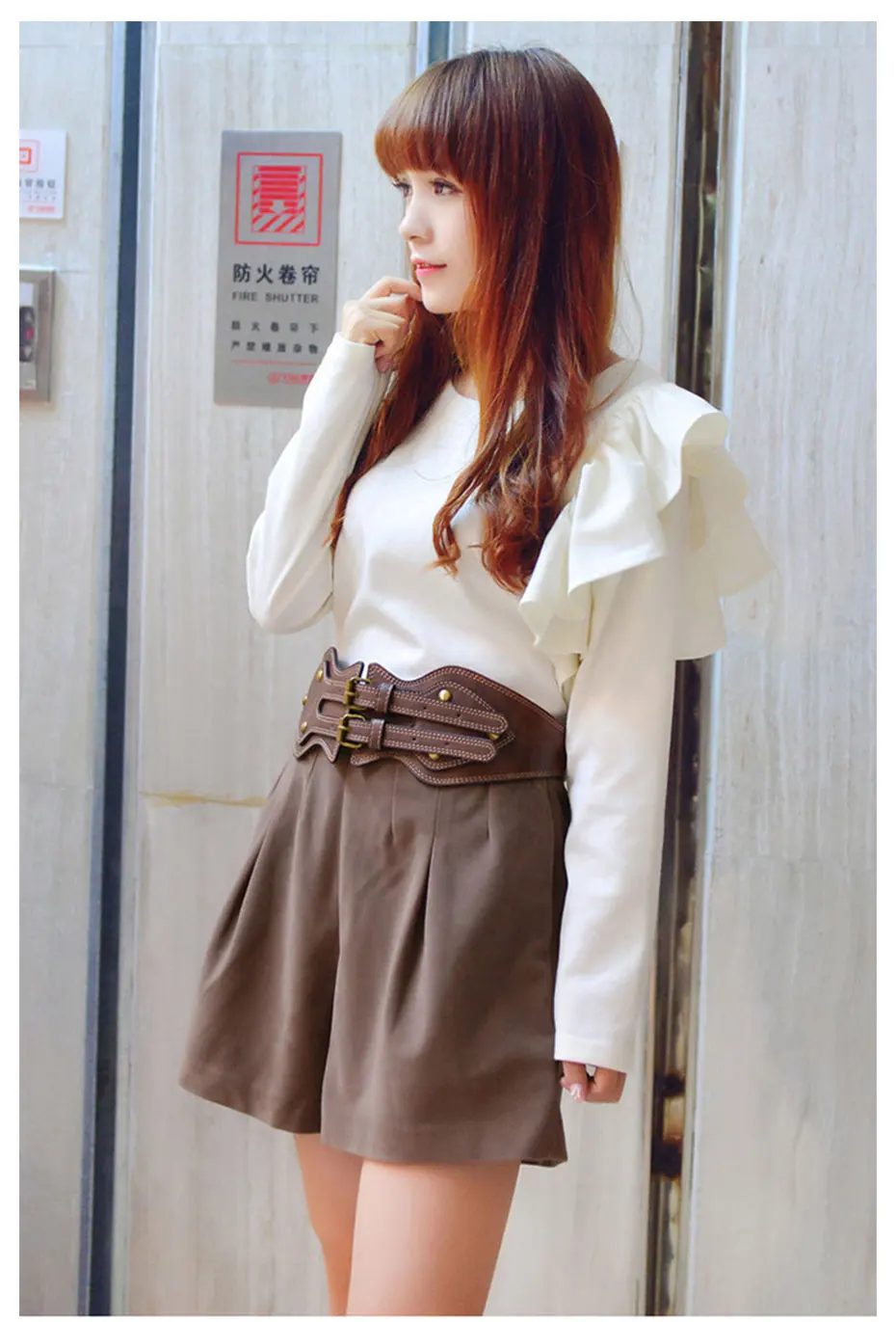Crazy Horse Leather Double Pin Buckle Women's Elastic Wide Belt All-match Women's Coat Girdle