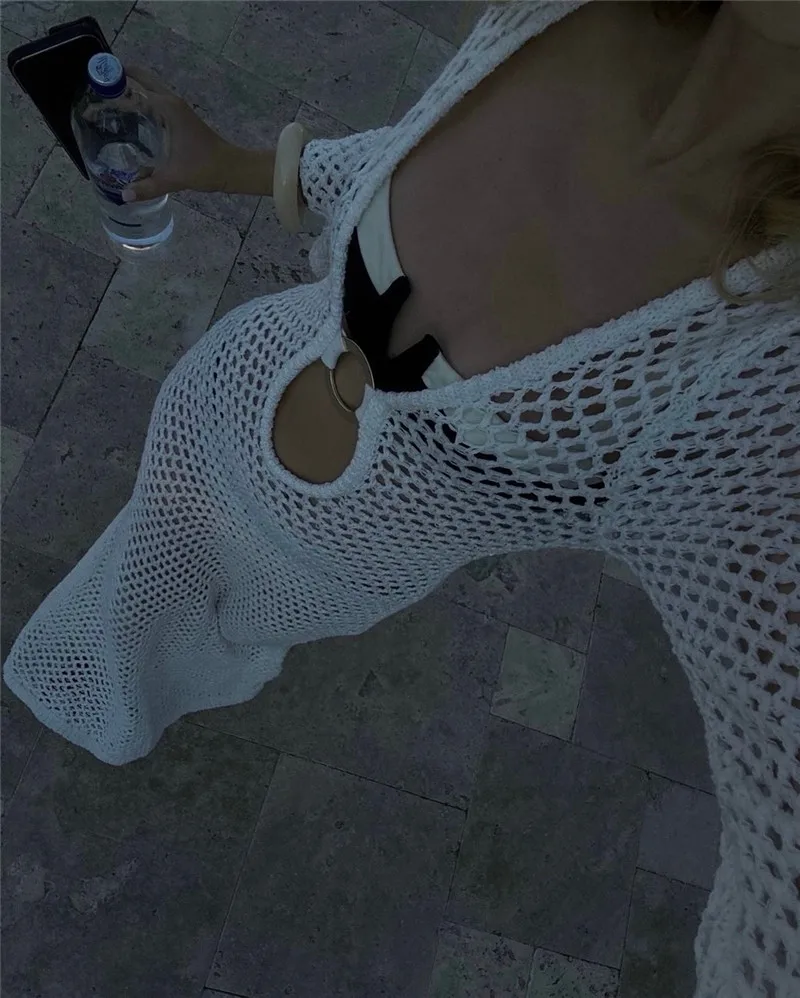 The Craft of Weaving: Knit presents a beautifully crochet-knitted beach dress, perfect for effortless summer styling. Made from a blend of polyester and acrylic, this solid-patterned cover-up offers a soft, lightweight feel with a breathable texture. Designed in a long style with a hem slit, it provides both elegance and ease of movement, making it a must-have for beachside lounging. This women’s beach cover-up embodies a chic, relaxed vibe, ideal for layering over swimwear for a stylish seaside look.