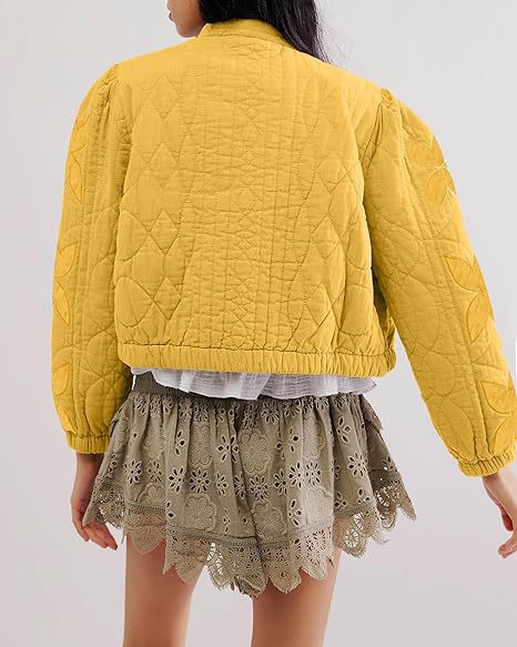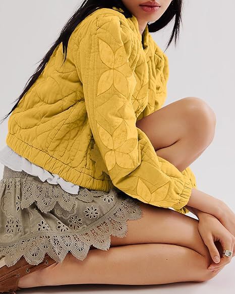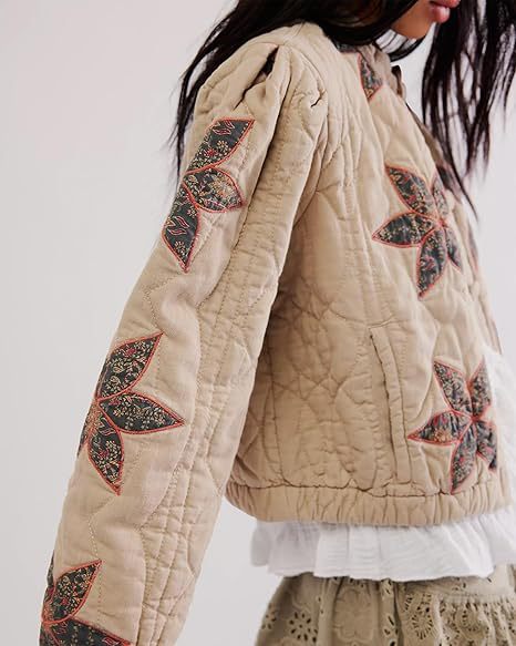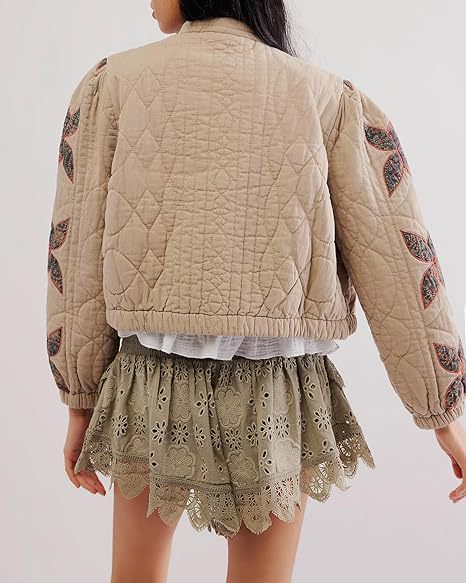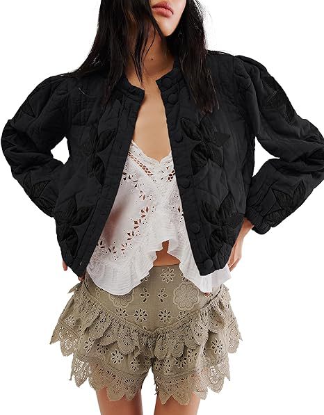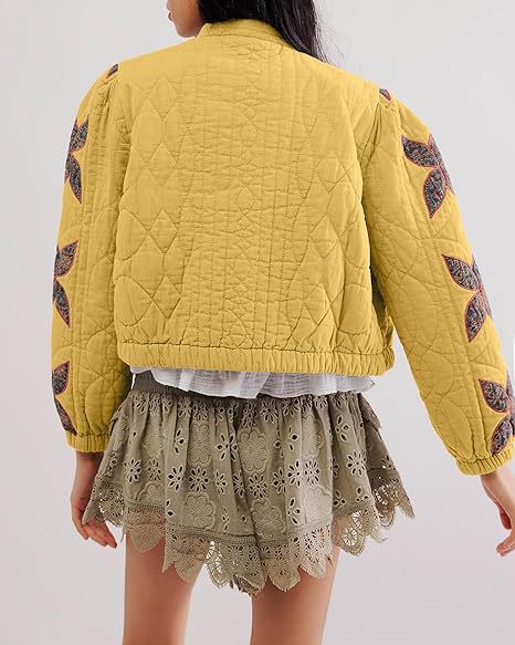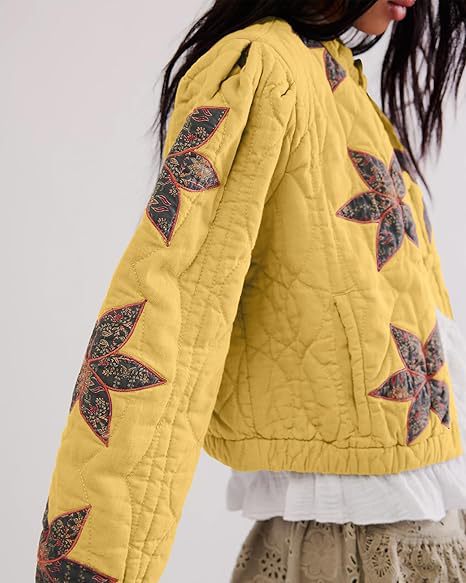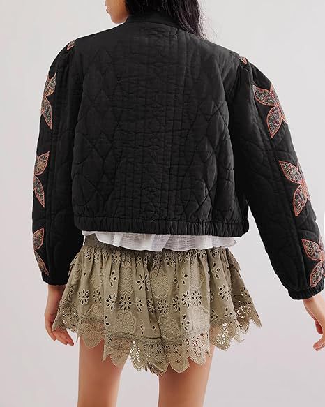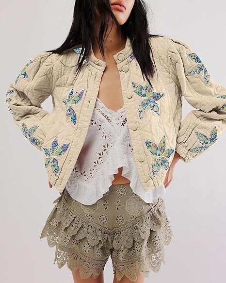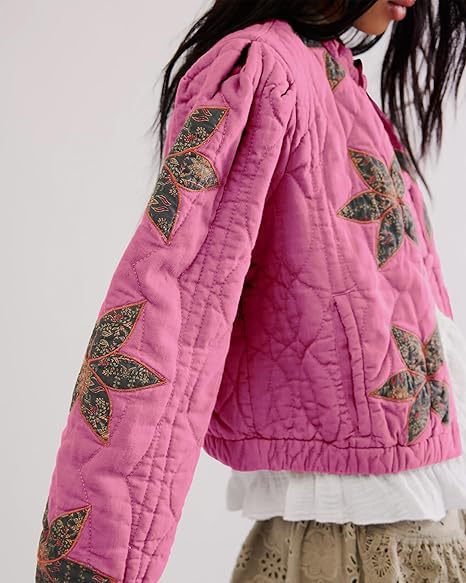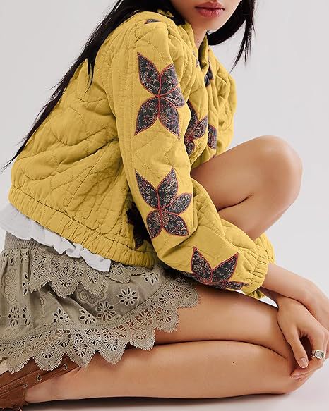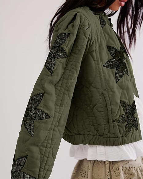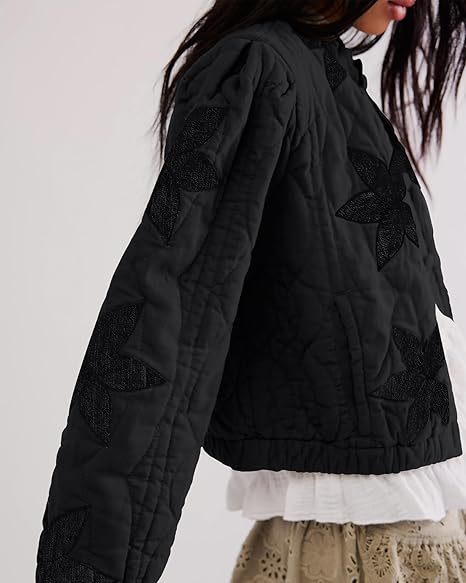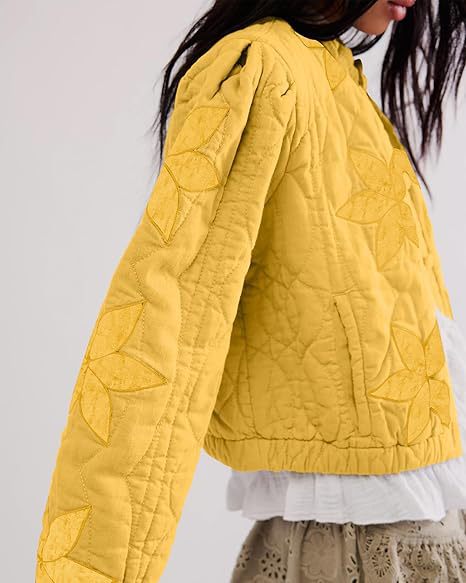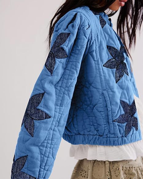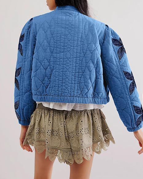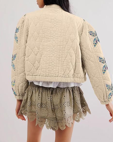 Cropped Lightweight Flower Quilted Jacket Embroidery Puffer Outerwear Coats