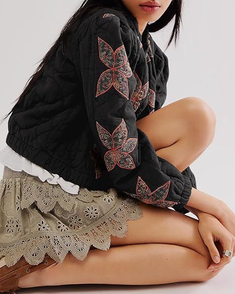 Step up your fashion game with this High Street Floral Appliqué Jacket, perfect for those who love a bold, trendy look with a touch of softness. Whether you're strolling through the city streets or meeting up with friends, this jacket will keep you both stylish and comfortable all day long.