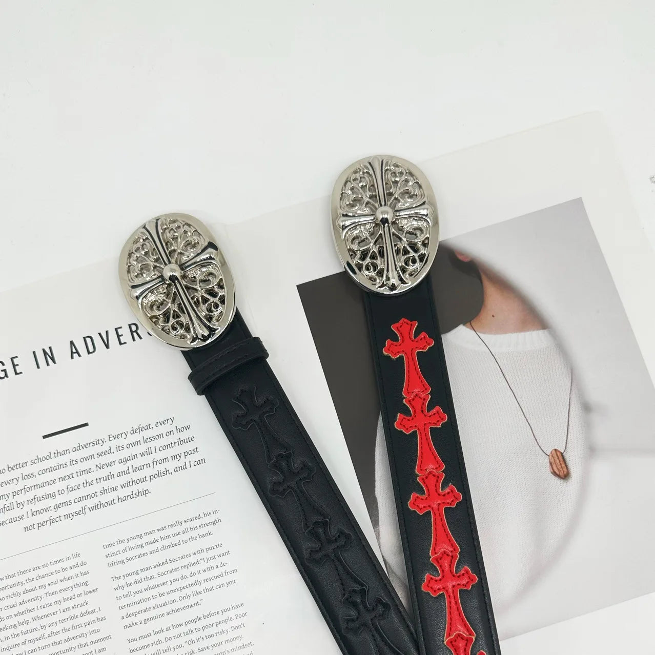 Cross Belt Men's and Women's Red Black Retro Round Cross Buckle
