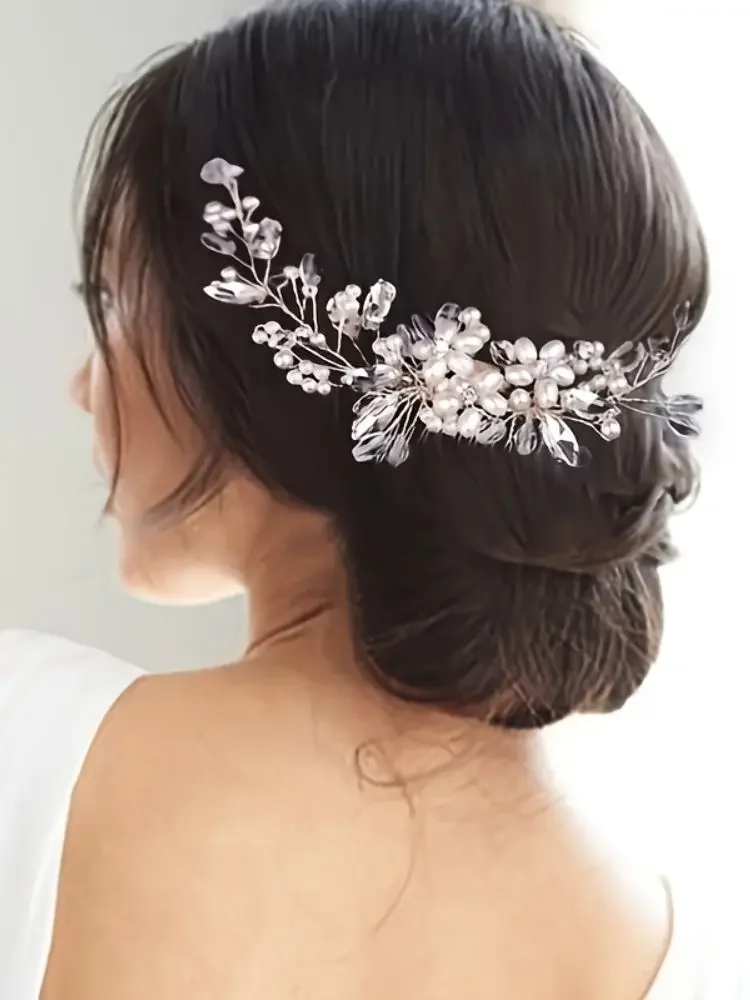 Add a touch of elegance with this Flower Pearl Hair Comb, designed for adults and ideal for weddings and special occasions. Featuring delicate crystal rhinestones, pearls, and flower-inspired detailing, this hair accessory serves as a stunning headband or hairpin. Perfect for parties or ceremonies, it brings a graceful sparkle to any look.