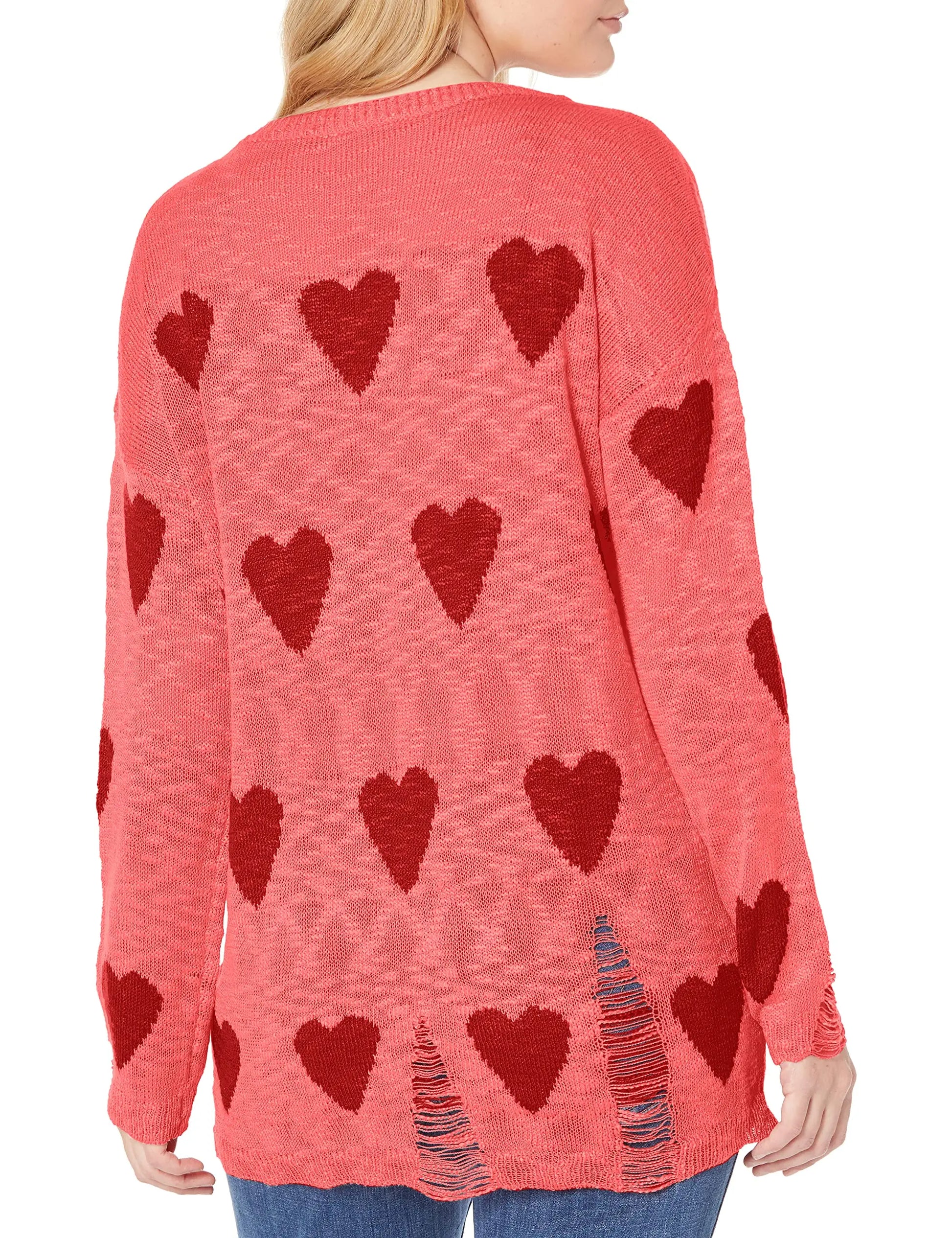 The Chic Pullover Sweaters for Women Features Knitted, Sexy Slash Crew Neck, Heart Print, Slouchy and Oversized Cutting, Loose Fit, Casual Style. A Cute Womens v neck Sweater Outwear in Fall and Winter.