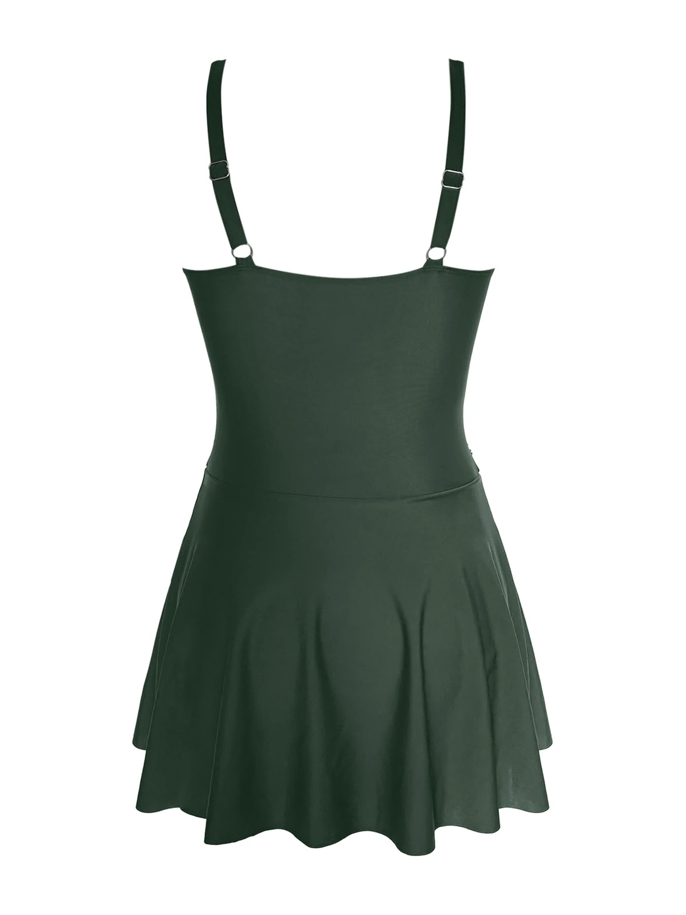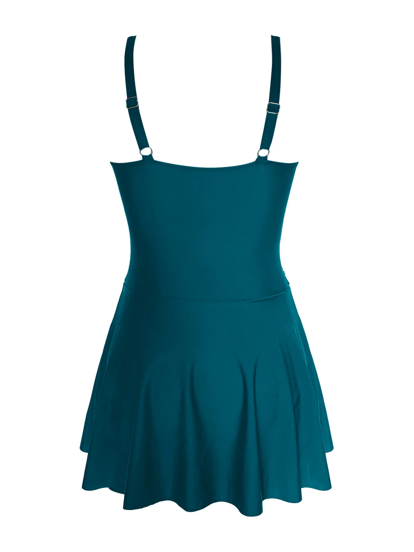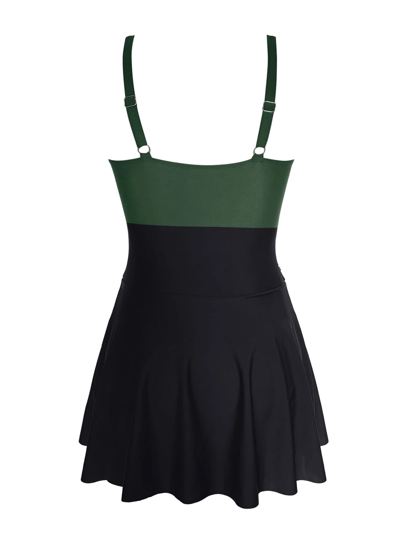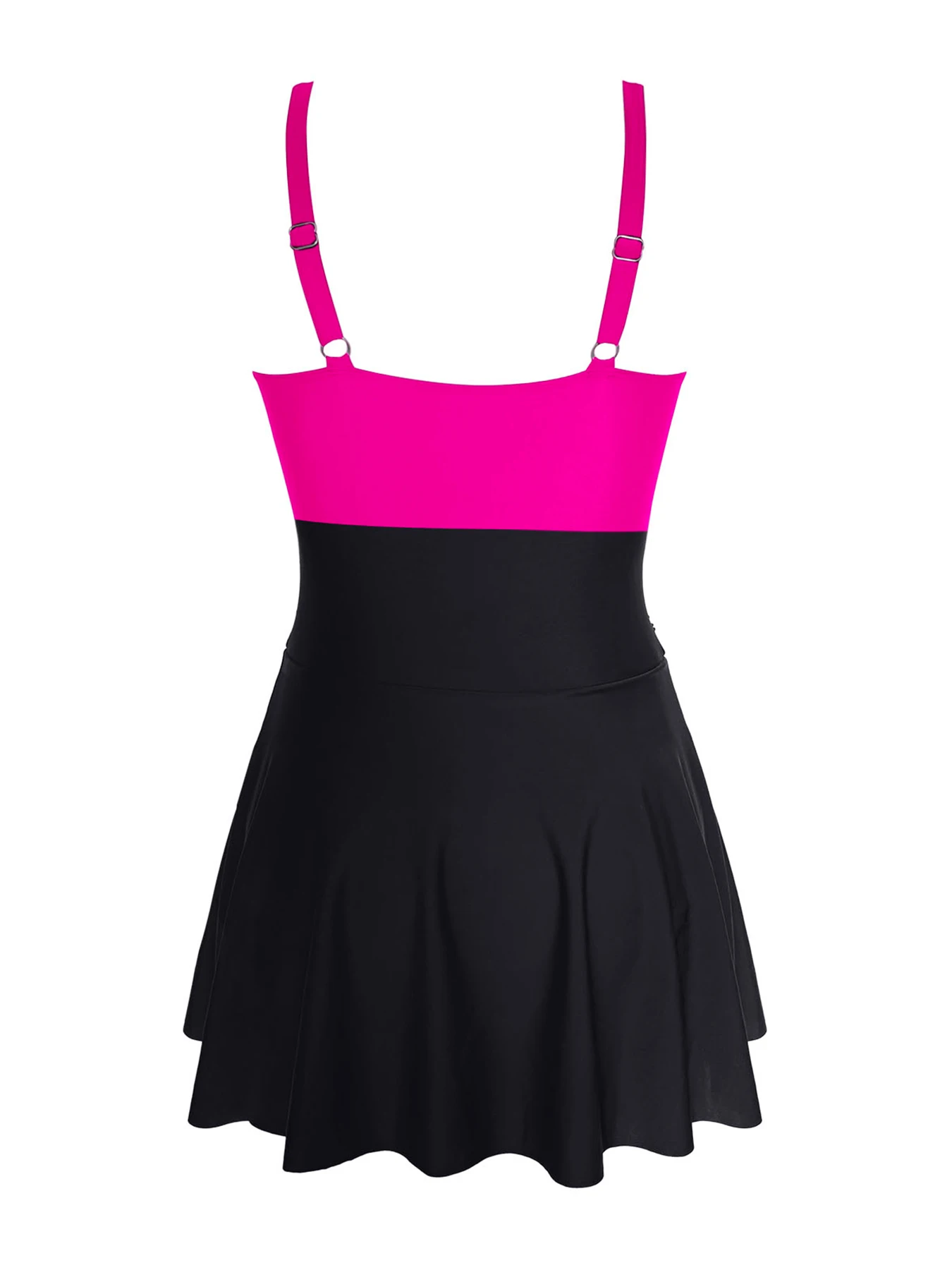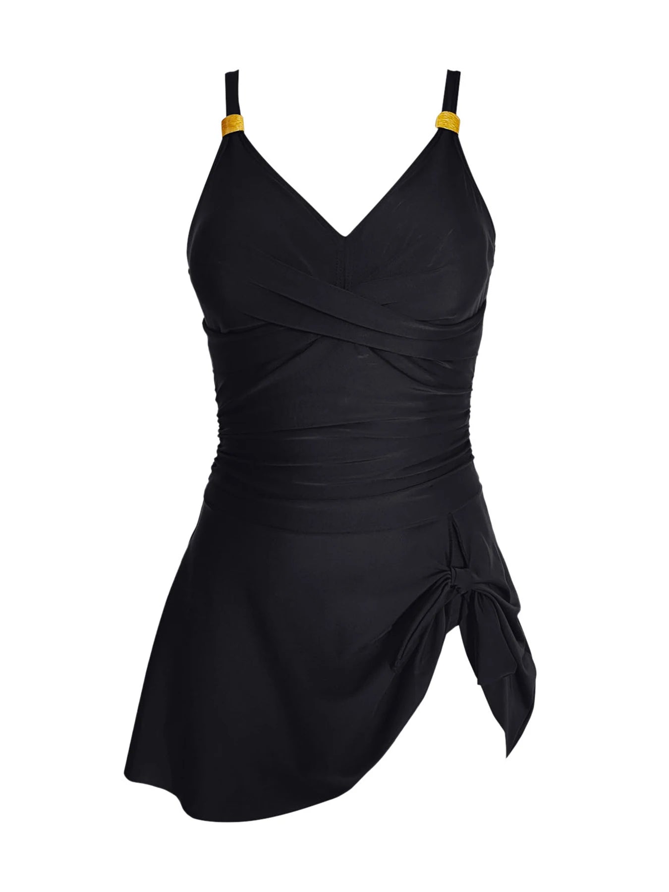 Embrace elegance and comfort with the eleposture Deep-V Cross One-Piece Swimsuit for Women. Designed for plus-size figures, this stylish swimsuit features a flattering deep-V neckline, cross-front detail, and a skirted bottom for added coverage. Made from a stretchable knit blend of polyester, spandex, and polyamide, it offers breathable comfort and a supportive fit. The patchwork monochrome design and adjustable shoulder straps make it perfect for beach days, poolside lounging, or summer getaways.