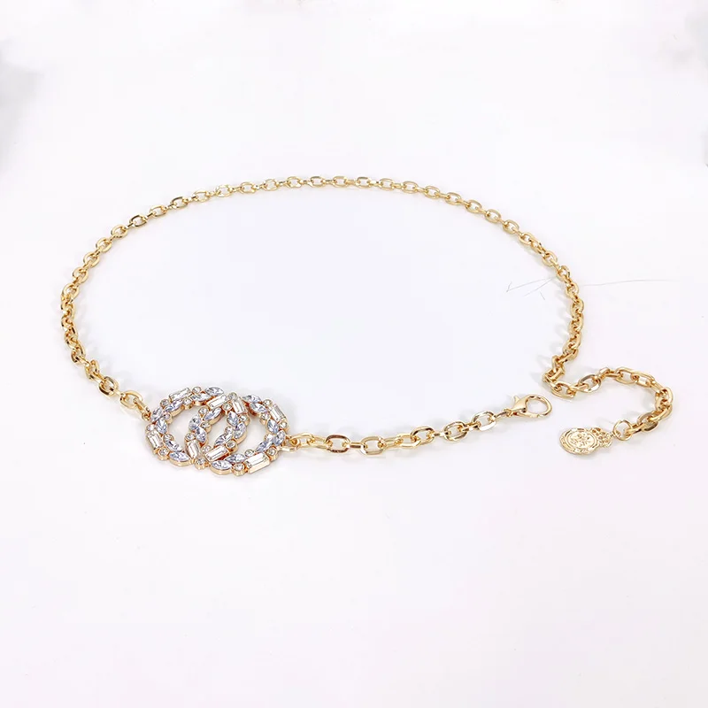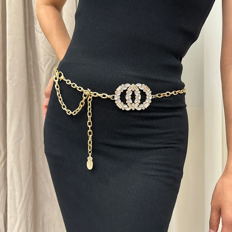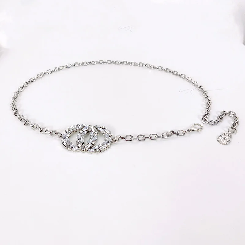 Designer Rhinestone Gold Circle Waist Chain Belt Female High-end Luxury Brands Belts For Women Silver Waistband