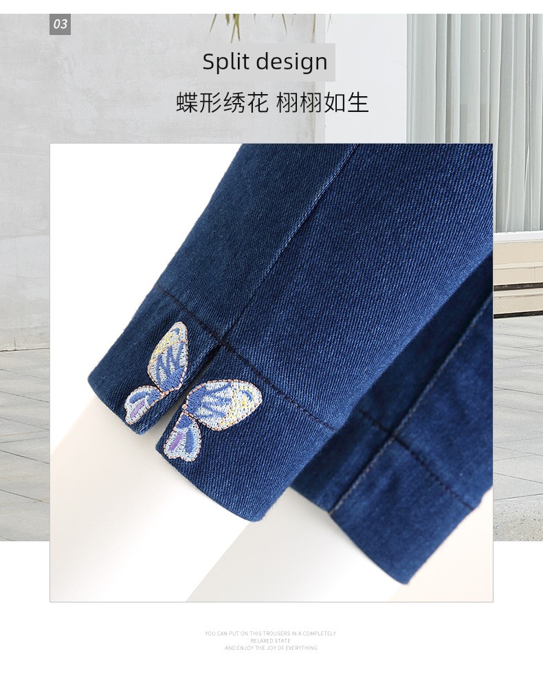 Elegance High Waist Full Elastic Waist Embroidered Butterflies Leggings Denim