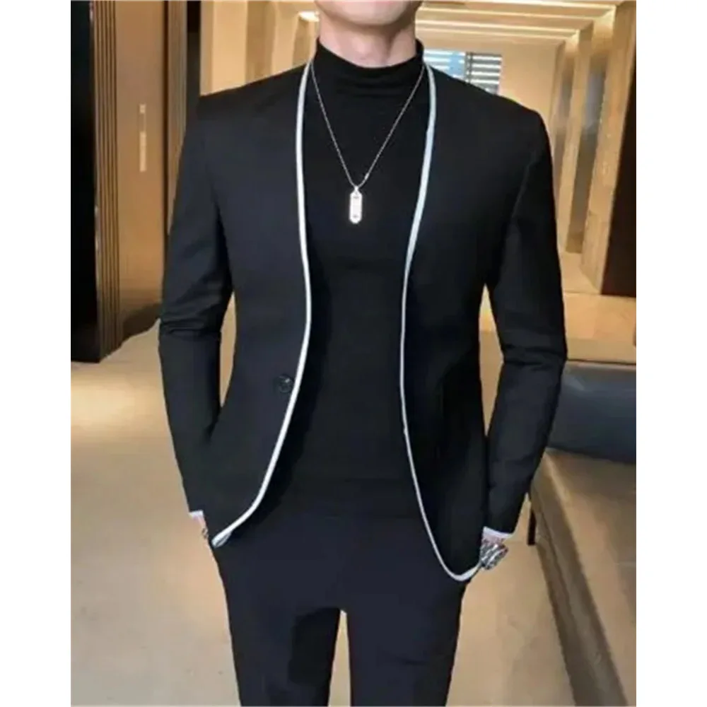Elegant Black Gentlemen Men's Suits Slim Fit Casual Prom Party 2 Piece Jacket Pants Full Set Luxury Male Clothing Terno Blazer