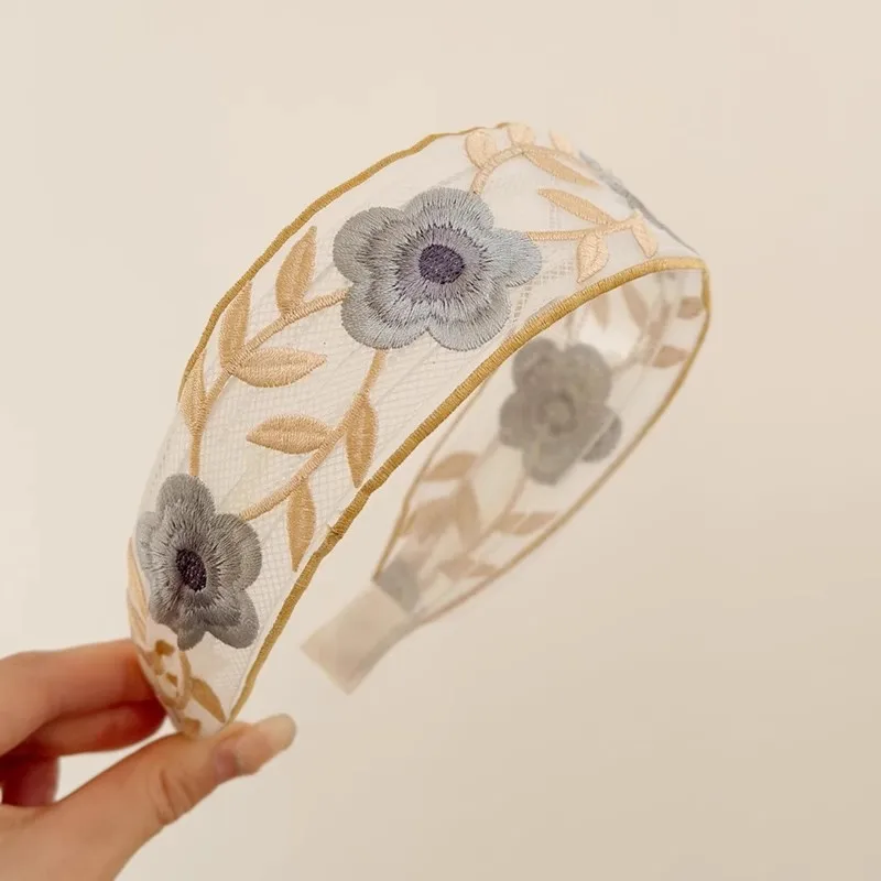 Elegant Chiffon Embroidery Flower Hairband For Women Sweet Hair Decorate Headband Hair Hoop Band Fashion Hair Accessories
