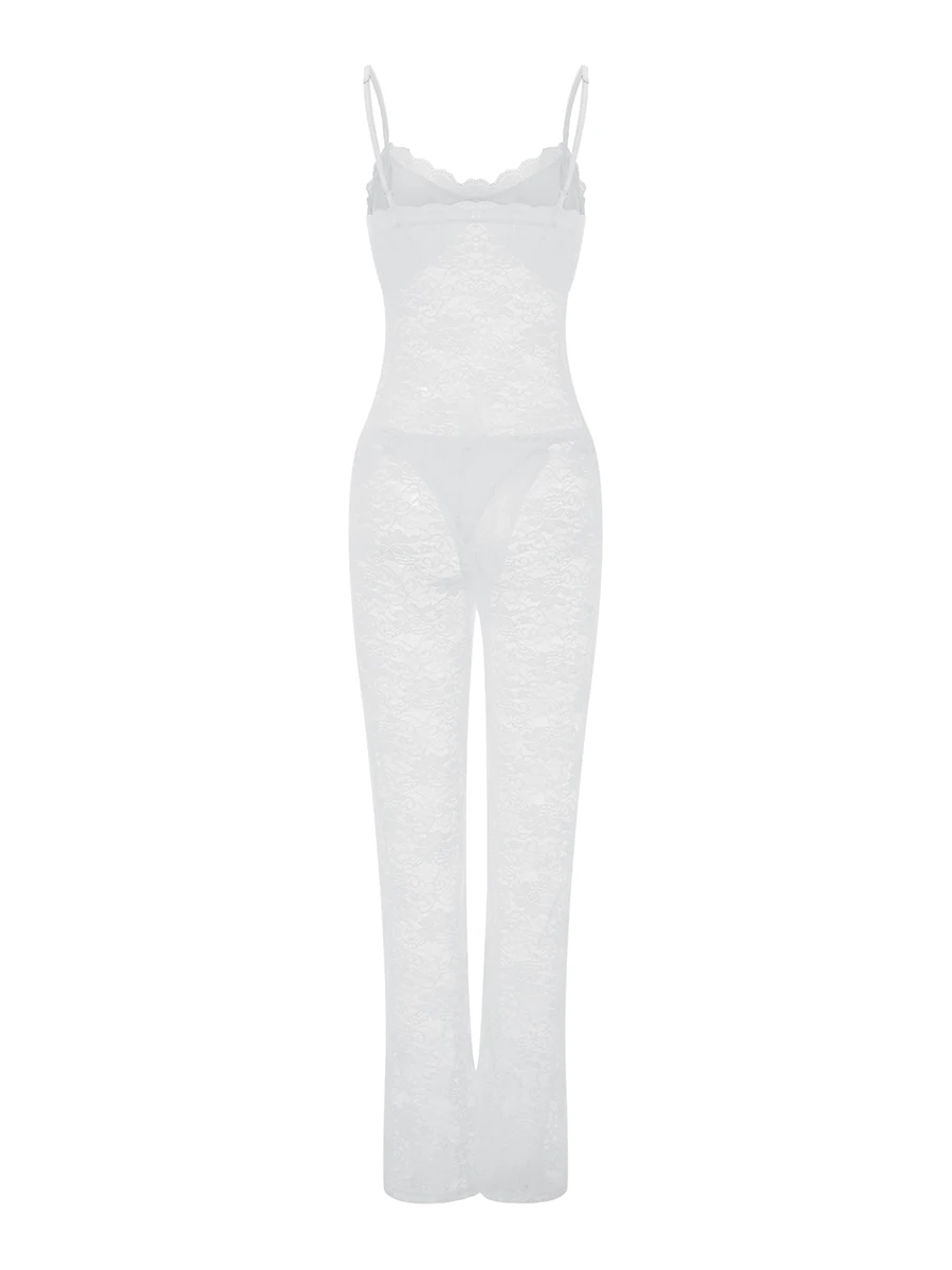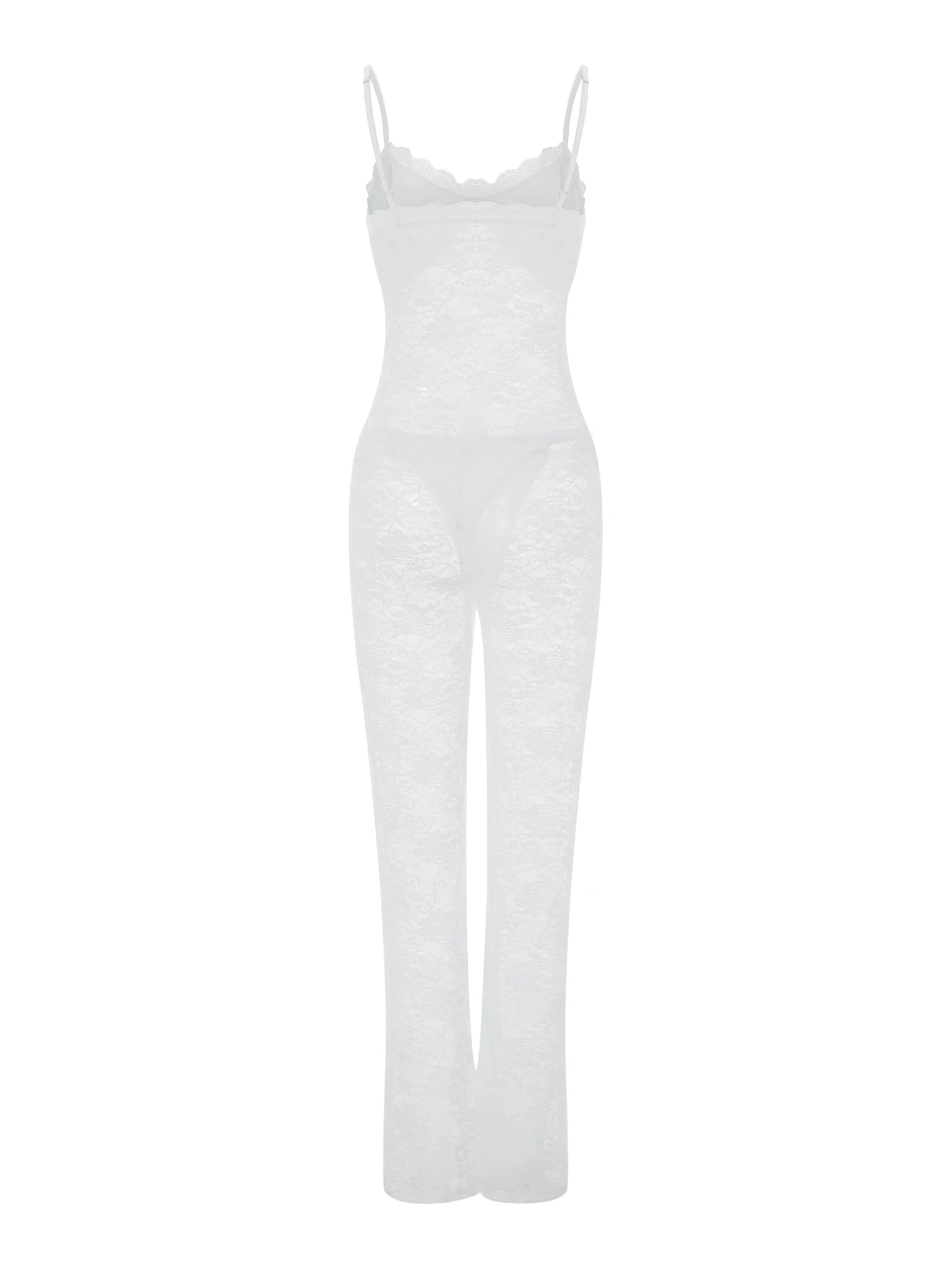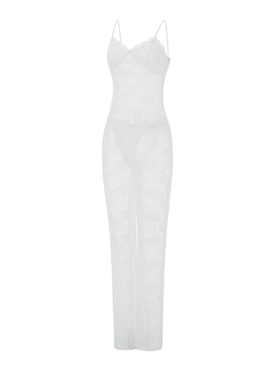 Women's Sheer Lace Jumpsuit Sleeveless Spaghetti Strap Mesh Bodysuit Fit Clubwear
