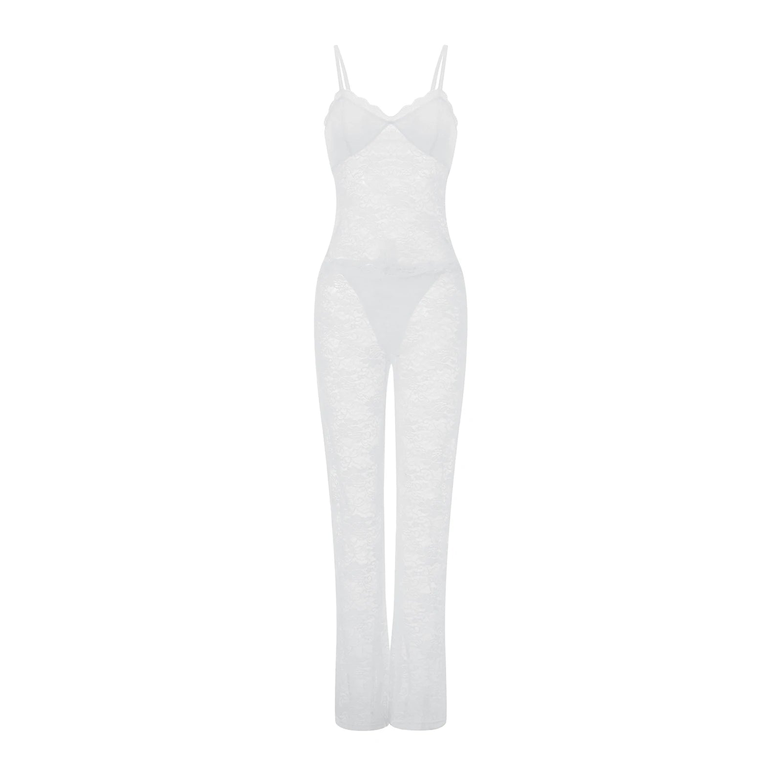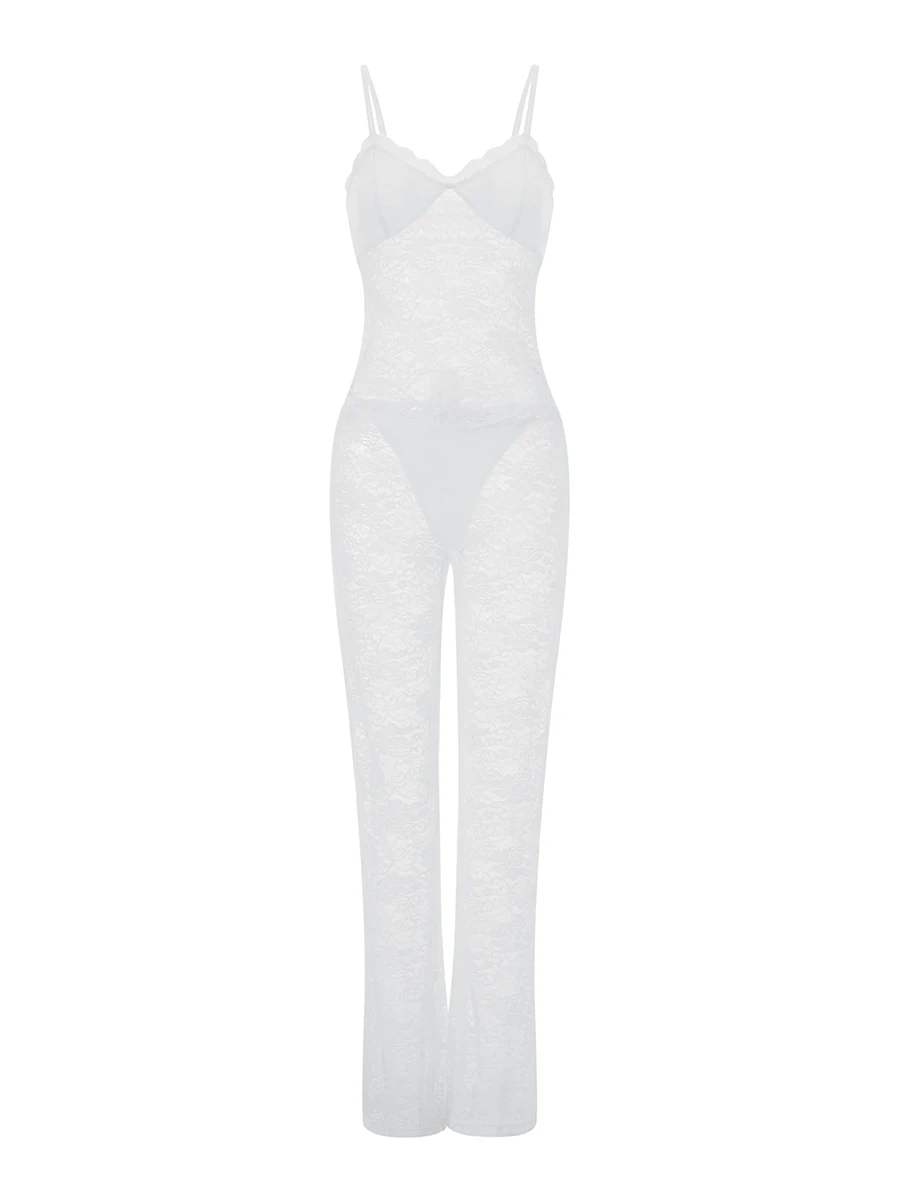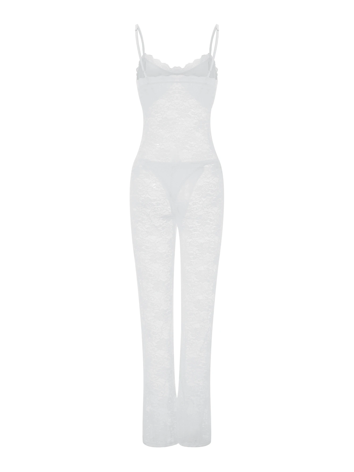 Women's Sheer Lace Jumpsuit Sleeveless Spaghetti Strap Mesh Bodysuit Fit Clubwear