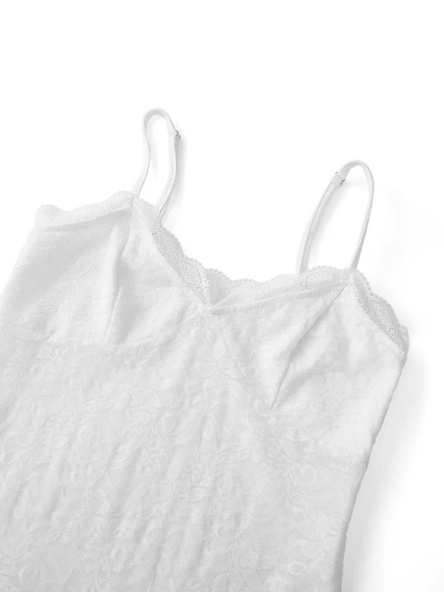 Elegant Floral Lace Romper with V-Neckline and Adjustable Spaghetti Straps Sexy Sheer Mesh Bodysuit
