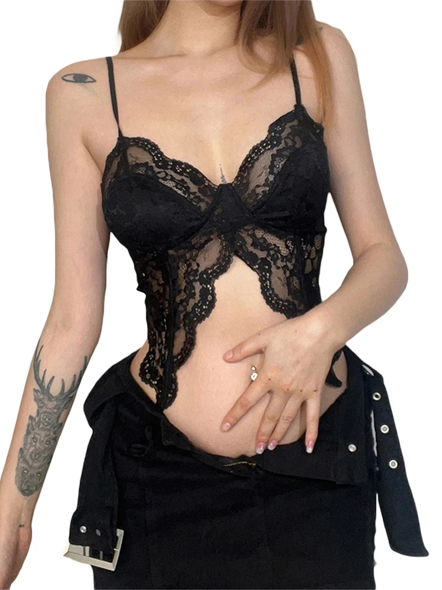 Women Lace Camisole, Sleeveless See-through Slit Summer Bralette for Club Party