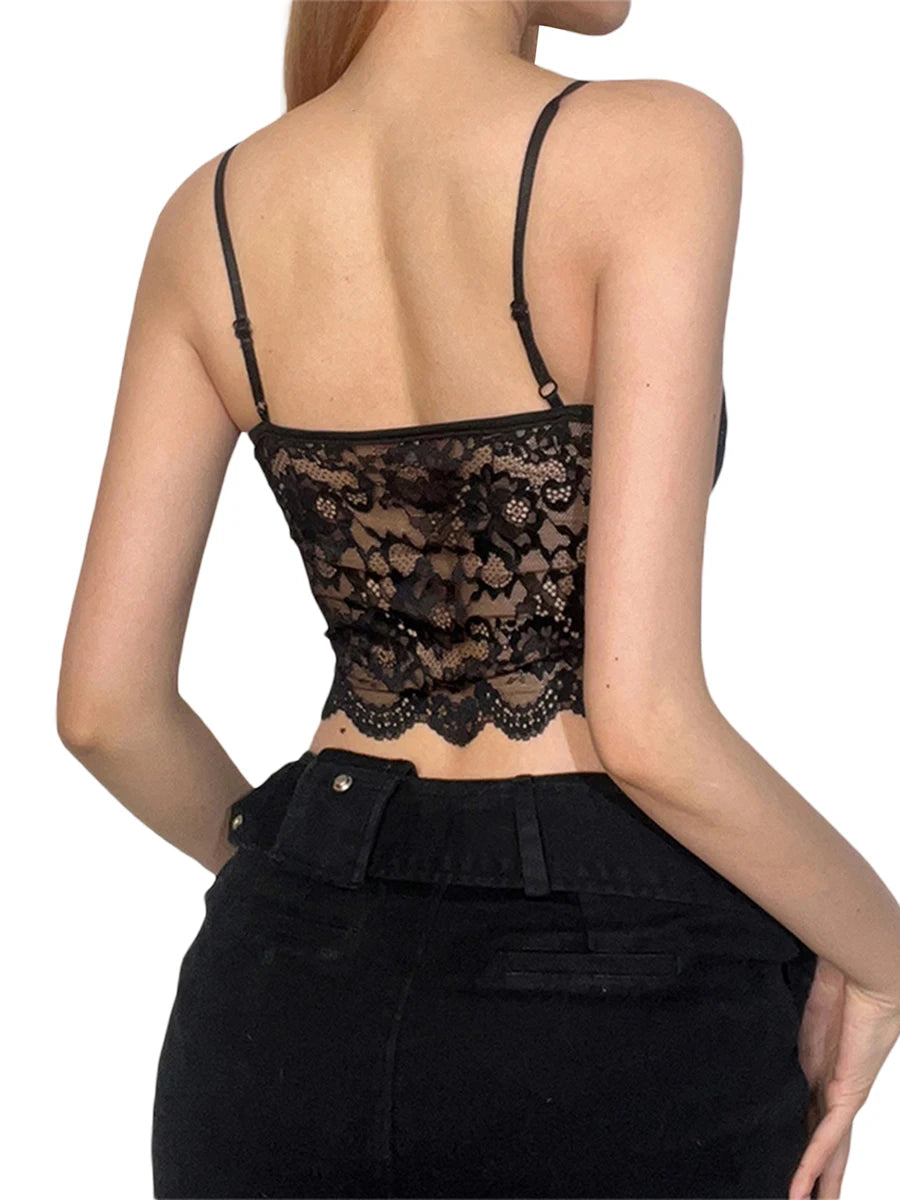 Elegant Floral Lace Sleeveless Camisole with Sheer Slit Detail Bralette for Nightclub Party or Date Night