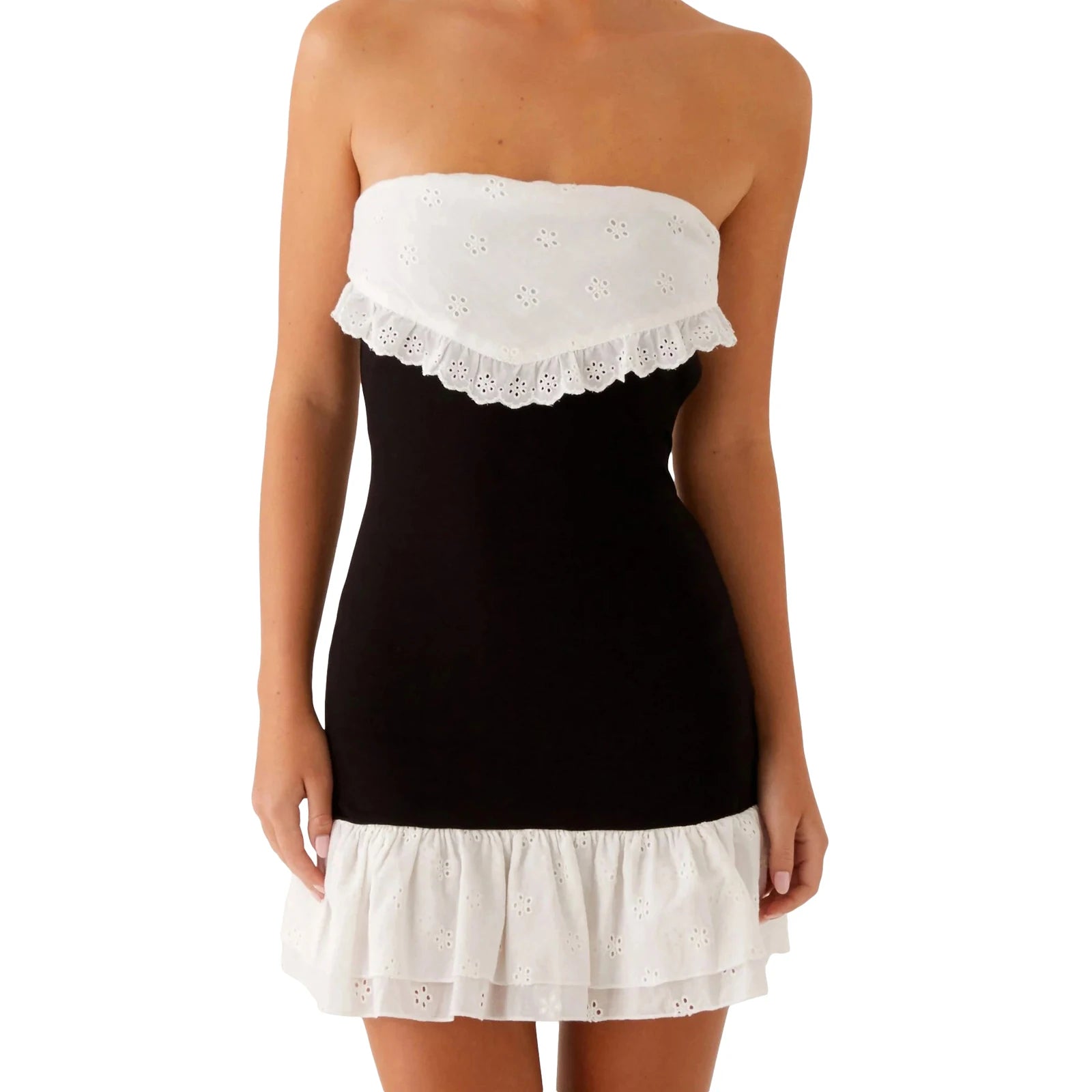 Women Mini Dress, Strapless Backless Flower Hollowed Patchwork Fit Summer Tube Dress ClubwearThe charming and attractive style makes you stand out in the crowd. Perfect to show your clavicle and feminine side!