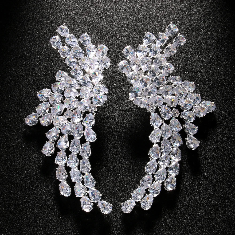 Elegant Wing Dangle Earrings Gorgeous Boho Design Rhinestone Hanging Earrings