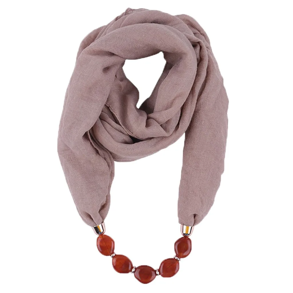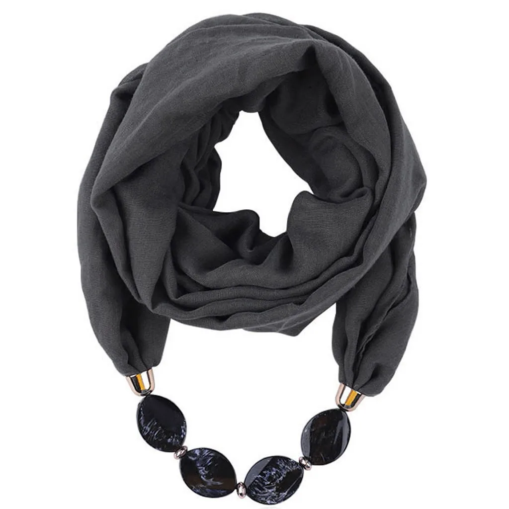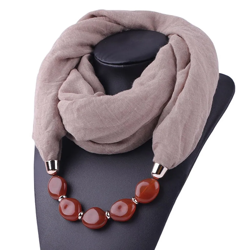 Elegant Women Necklace Scarf with Ethnic Style Pendant Soft Cotton Linen Design for Versatile Fashion Accessory