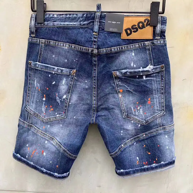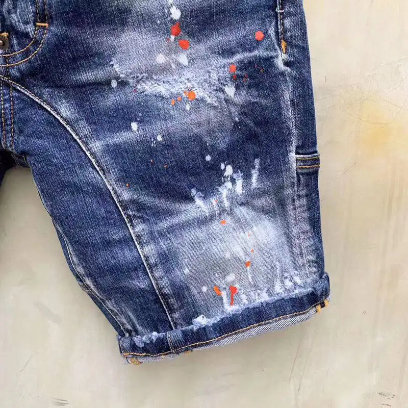 European and American Shorts with Gold Leather Strip Zipper Decoration, Holes, White Primer, Fashionable Unisex