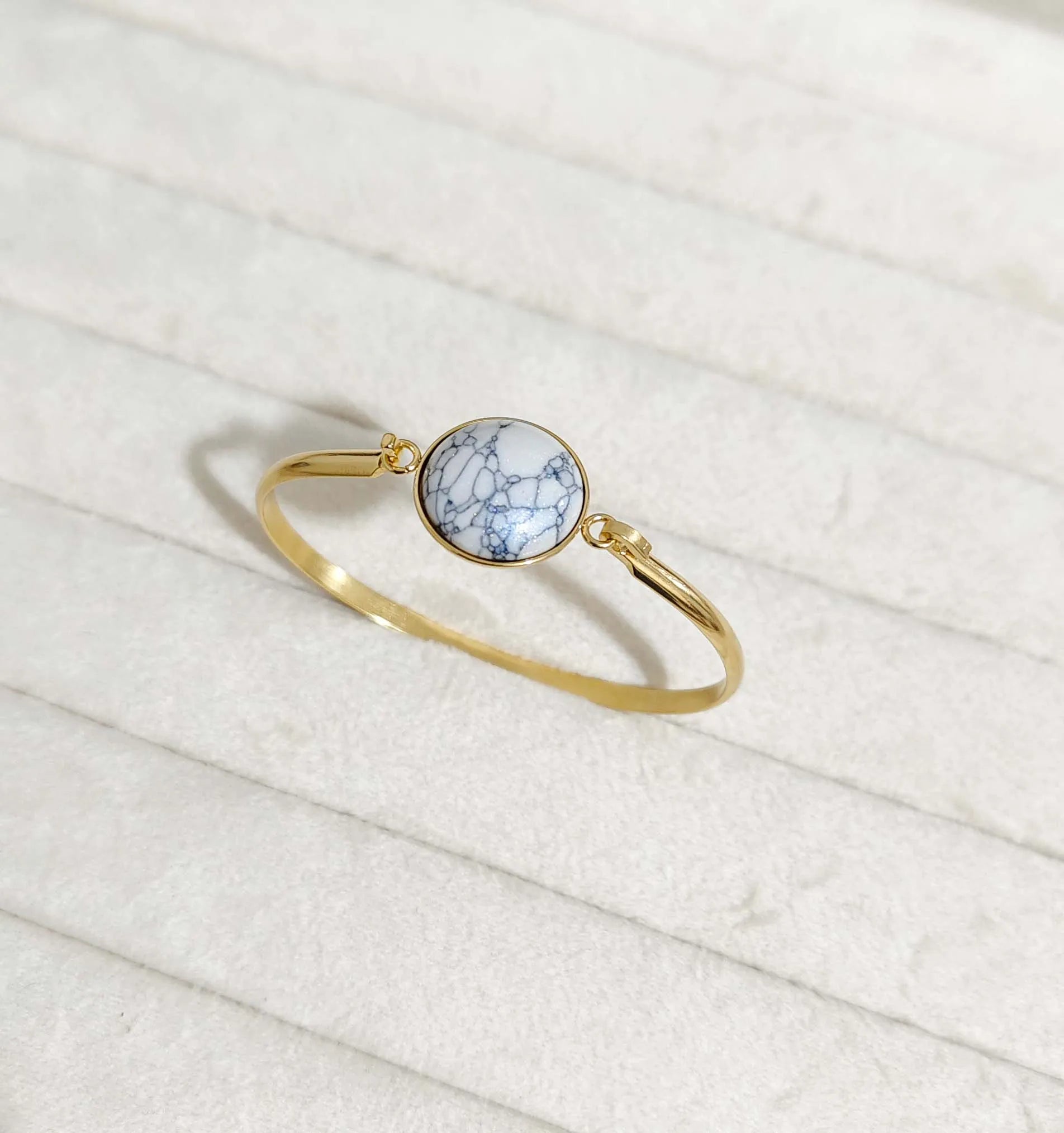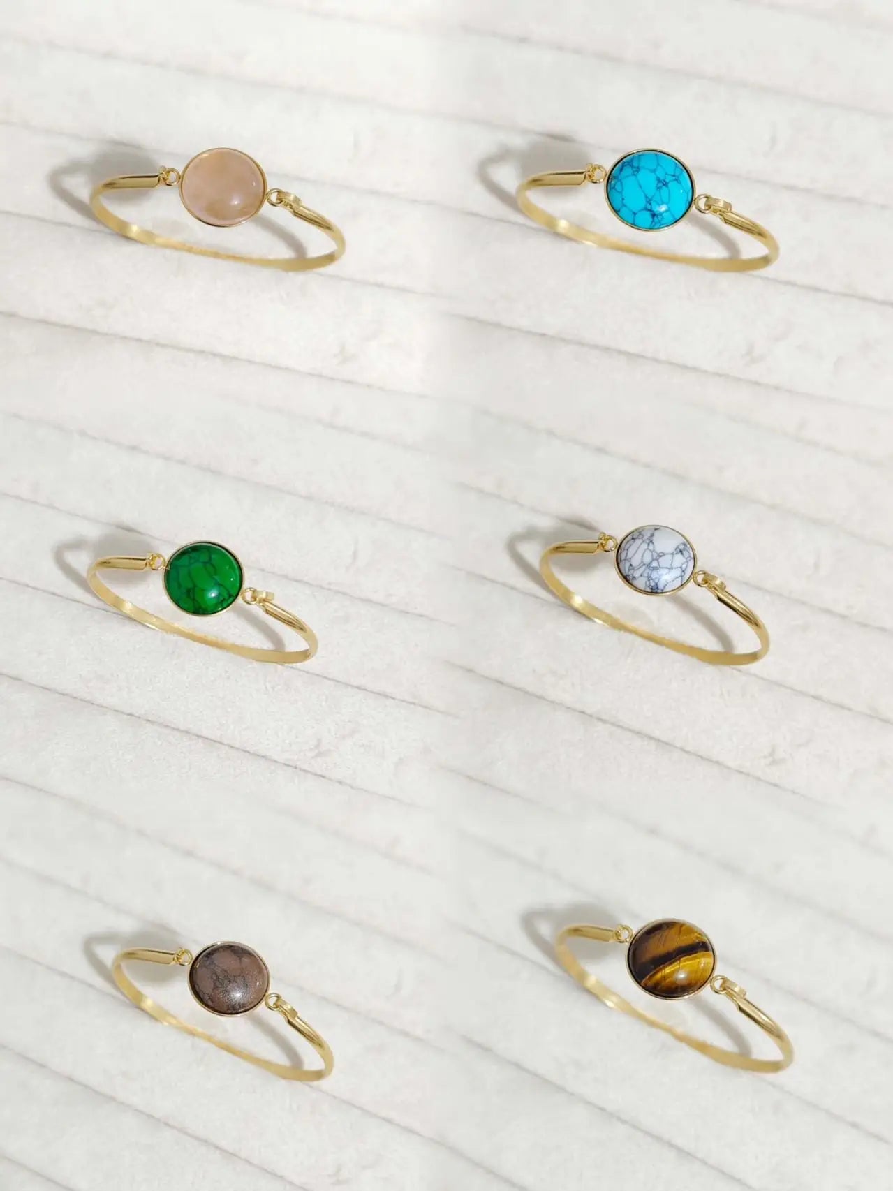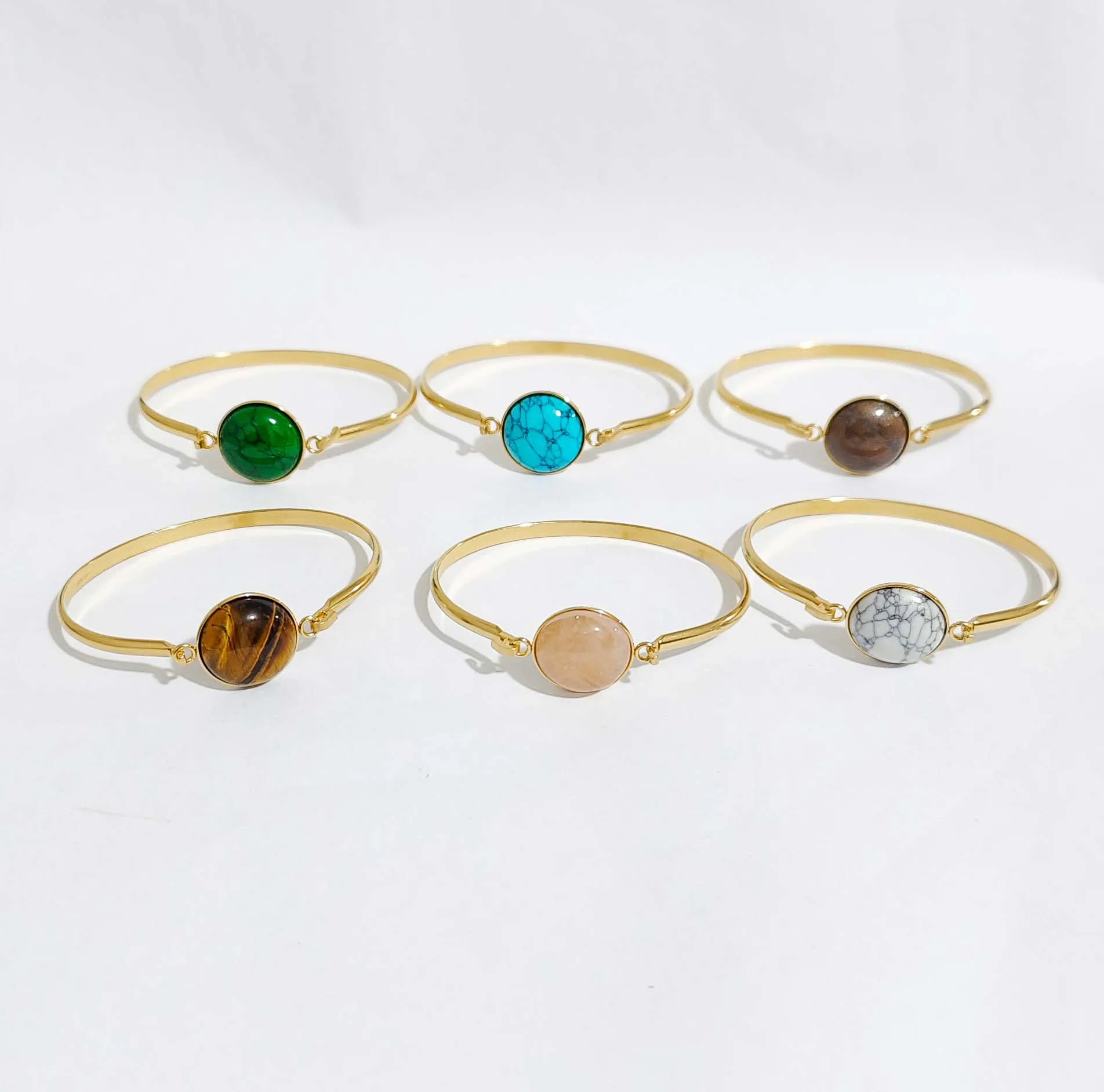 European and American wind fashion natural stone bracelet retro art round opening stainless steel bracelet
