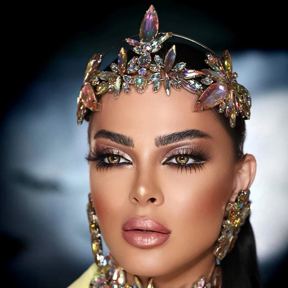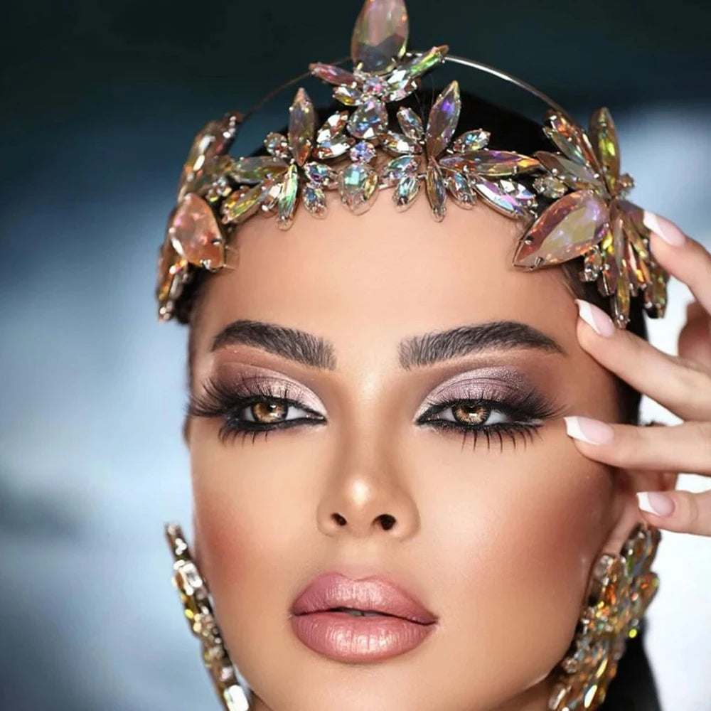 Exaggerated Crystal Forehead Tiaras Hair Accessories Colorful Rhinestone Headband