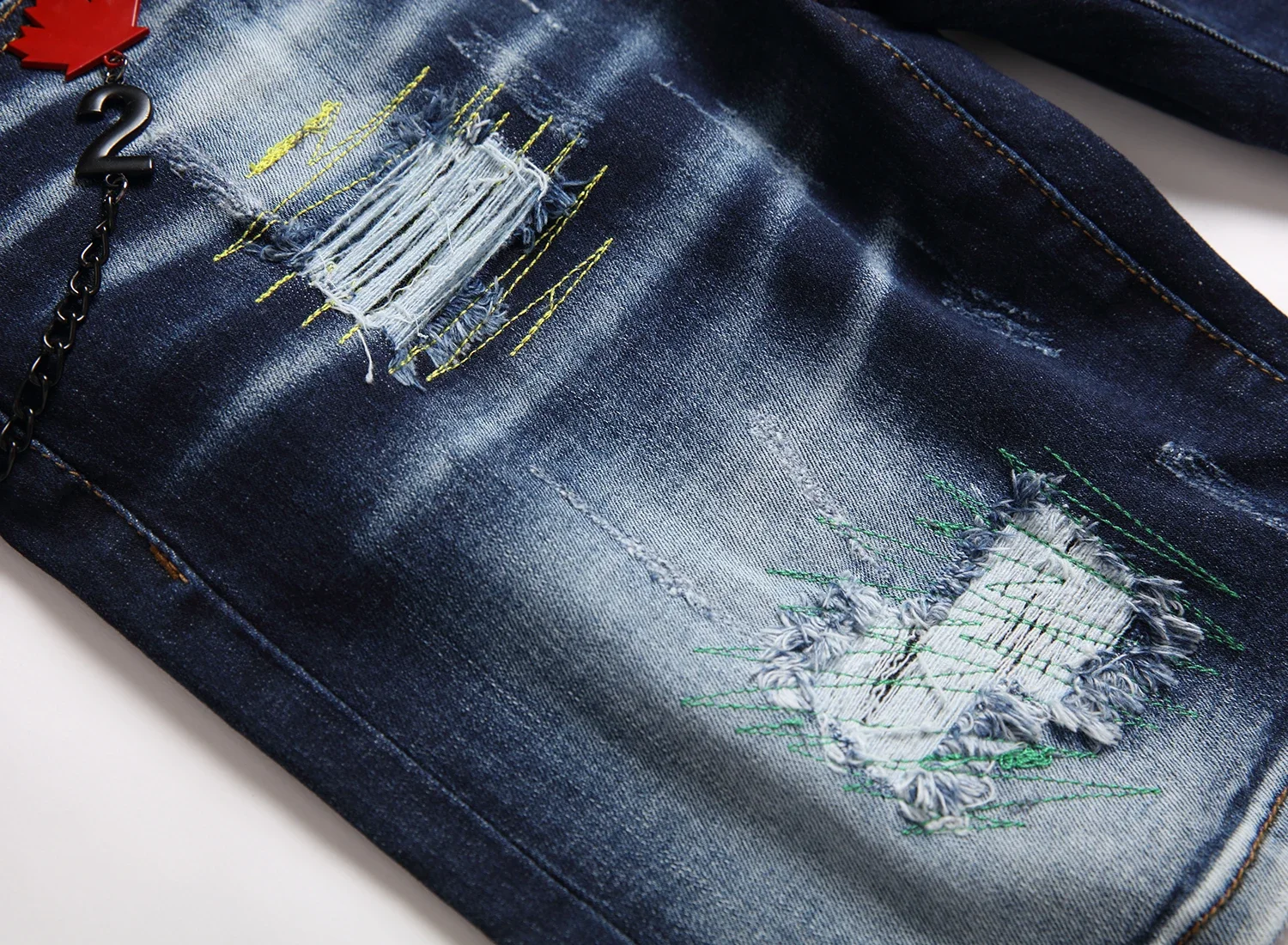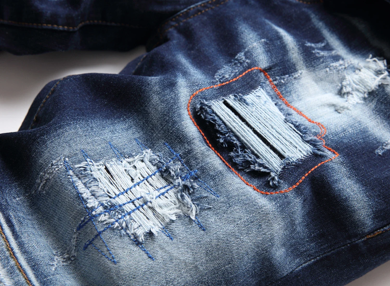 fashion blue Denim Shorts Summer Holes BUTTON FLY Shorts Jeans High Quality Stretch Fit Denim Jeans Shorts