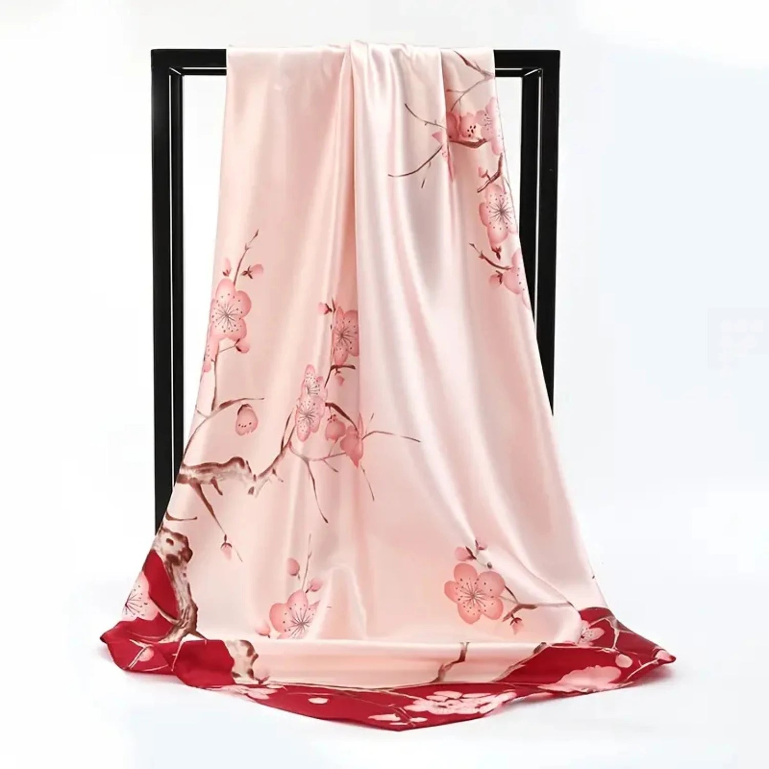 Fashion Flower Print Square Scarf - Women's Winter Warm Imitation Silk Scarf