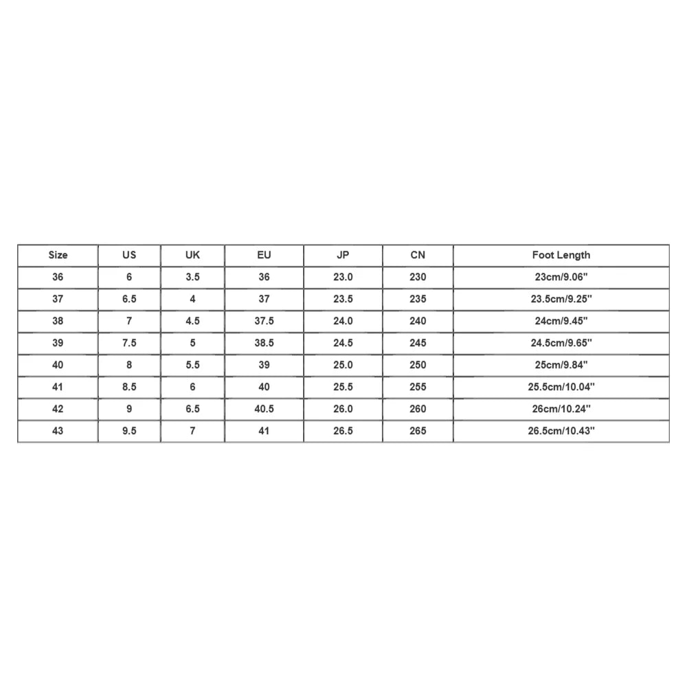 | Size:36 | US:6 | UK:3.5 | EU:36 | JP:23.0 | CN:230 | Foot Length:23cm/9.06'' |