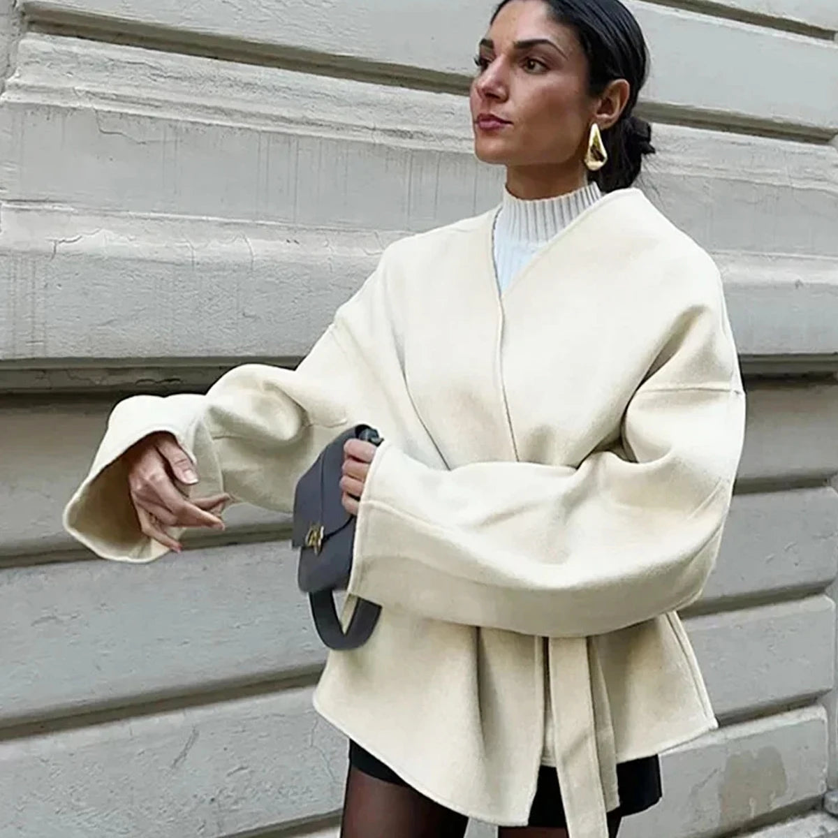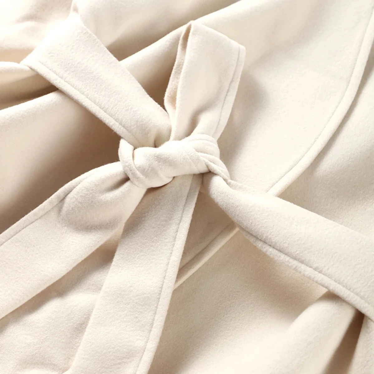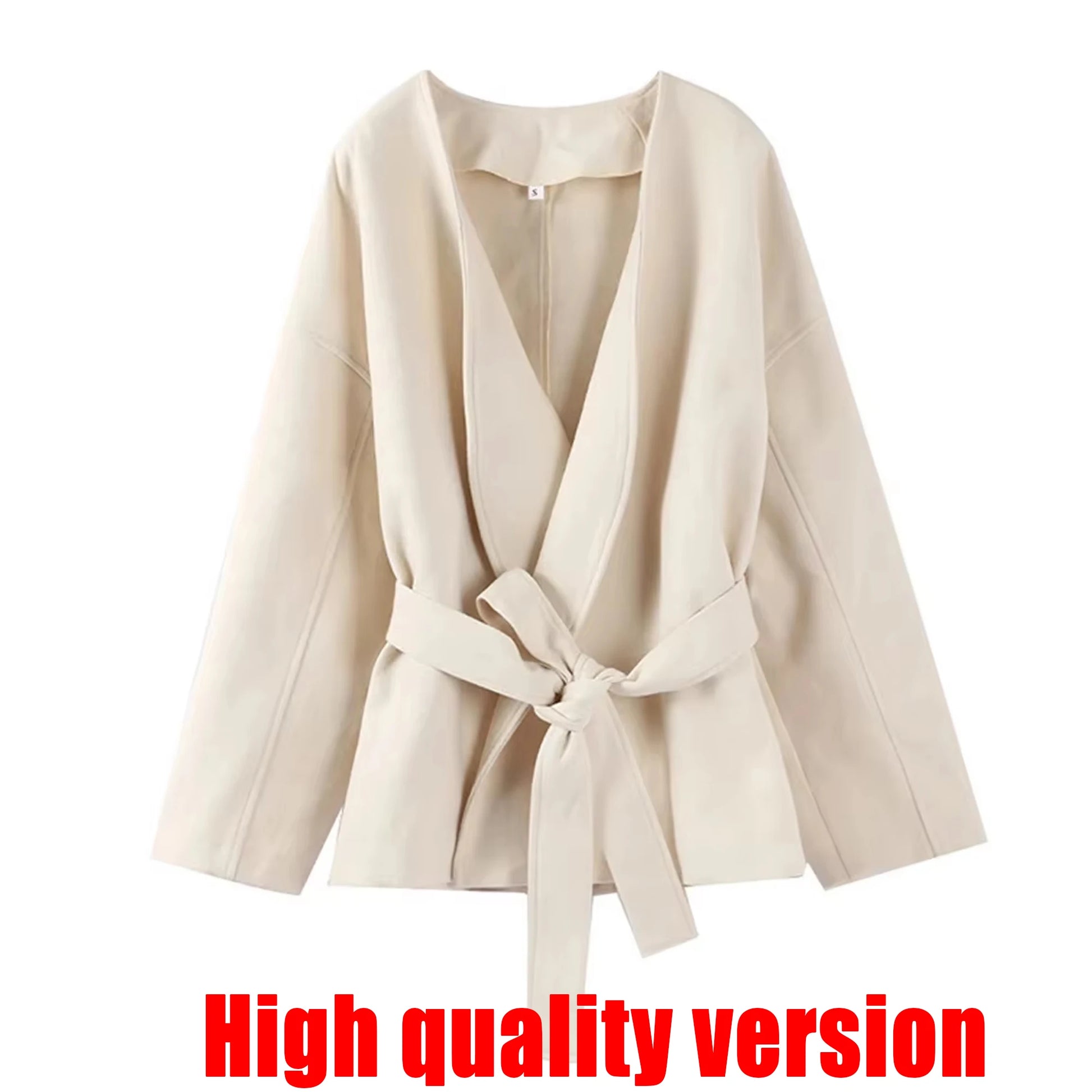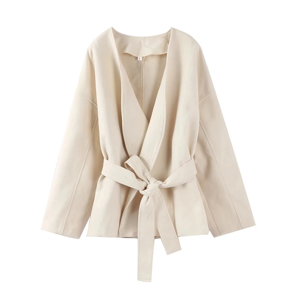 Fashion Solid Fleece Coat Belt Elegant V-neck Long Sleeve Jacket