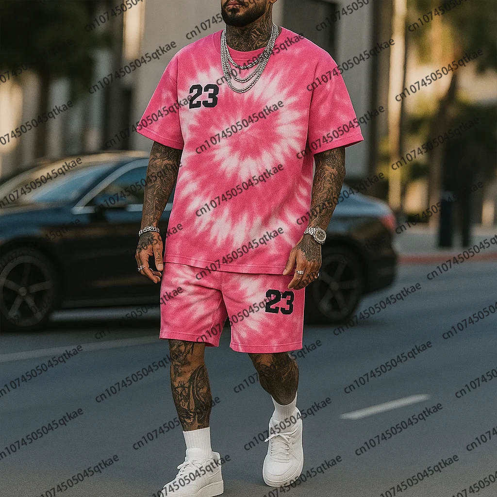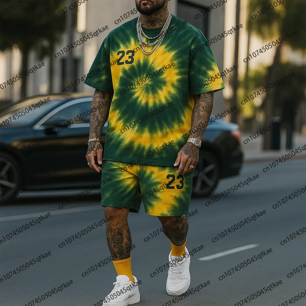 Fashion Tie Dye Basketball No.23 Print Oversized Streetwear Short-Sleeve T-shirt And Shorts Set Summer Breathable Casual 2 Piece