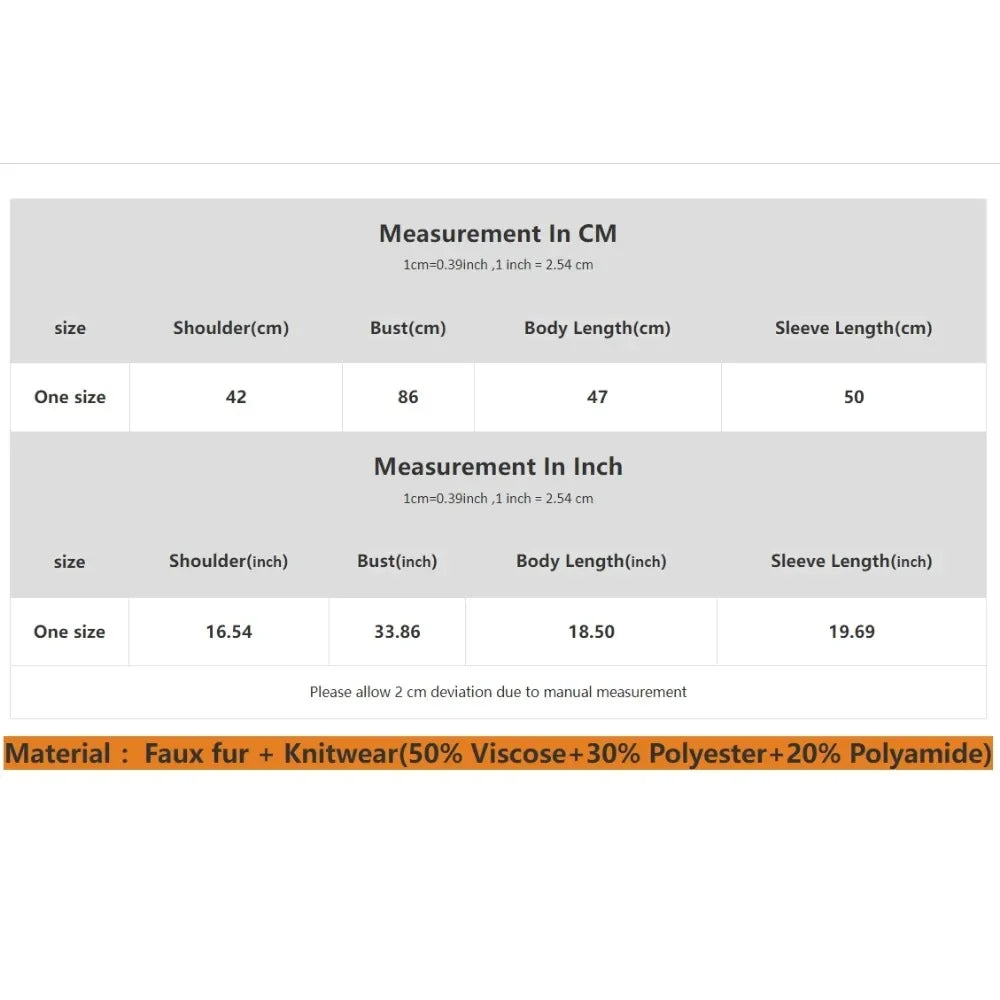 Material :Faux fur + Knitwear(50% Viscose+30% Polyester+20% Polyamide)