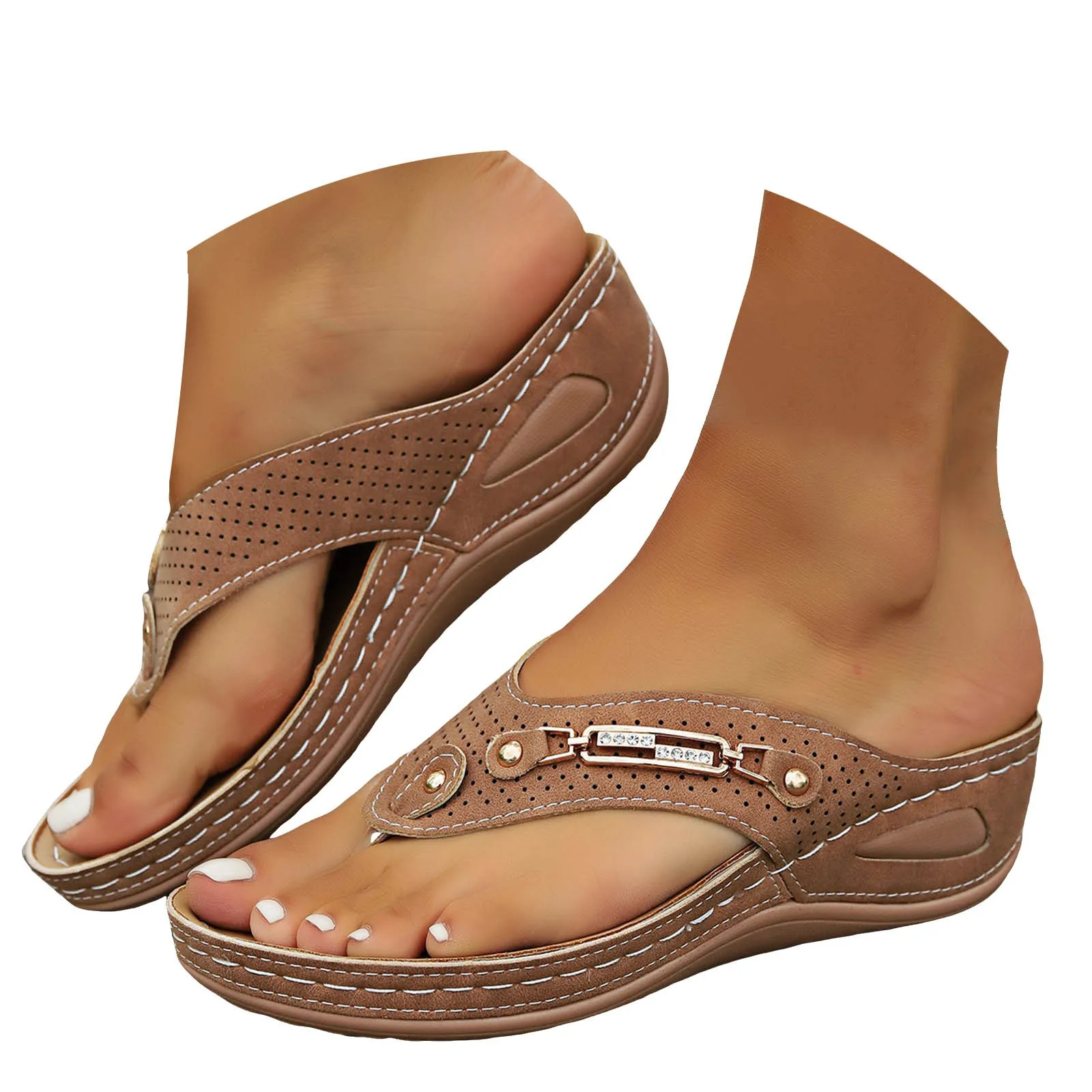Flip Flops Women's Hollow Out Wedge Summer Wedge Sandals Clip Toe Orthopedic Sandals Female Pu Leather Non-Slip Slippers