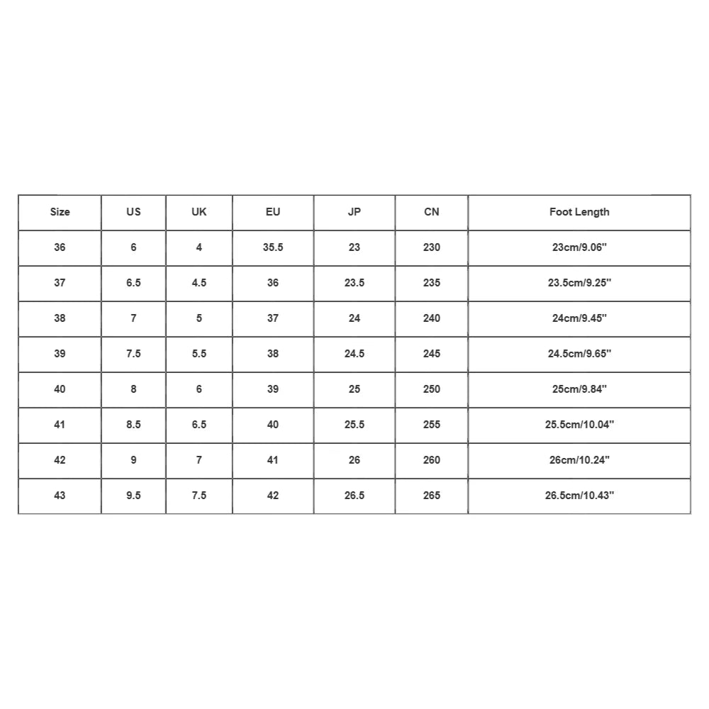 | Size:38 | US:7 | UK:5 | EU:37 | JP:24 | CN:240 | Foot Length:24cm/9.45'' |