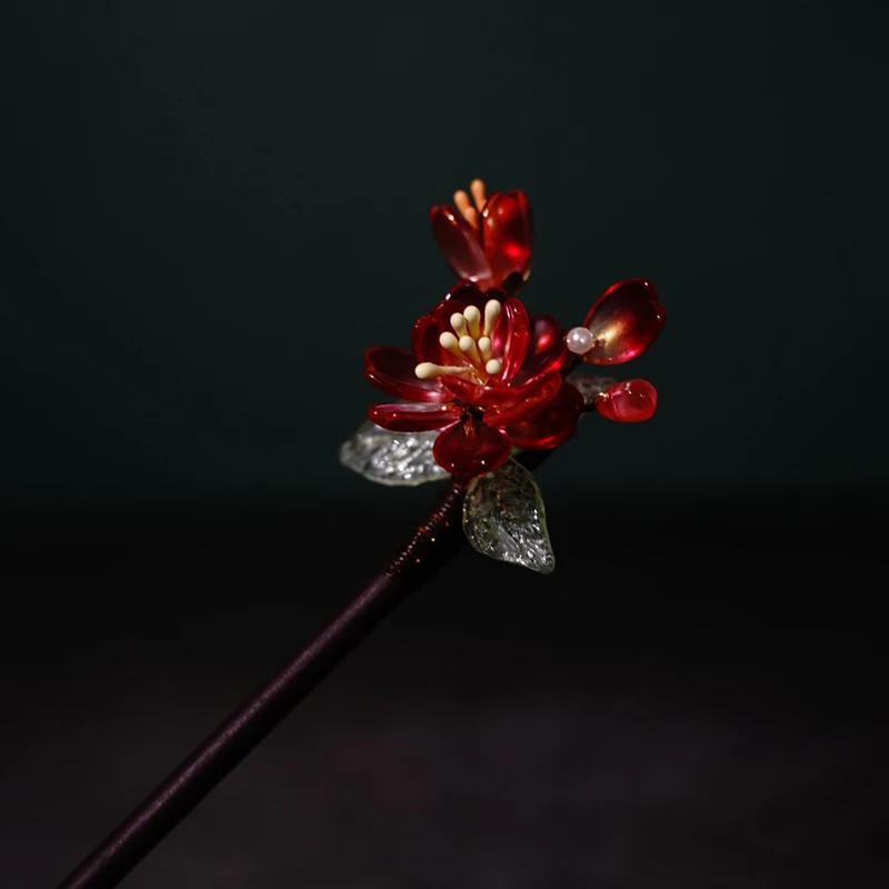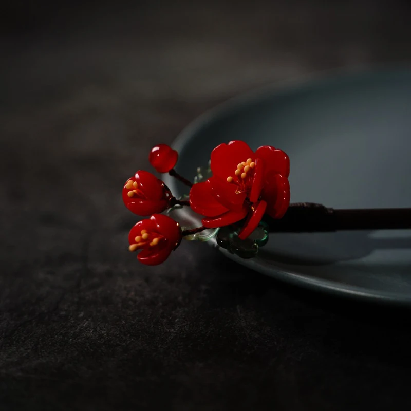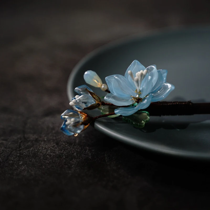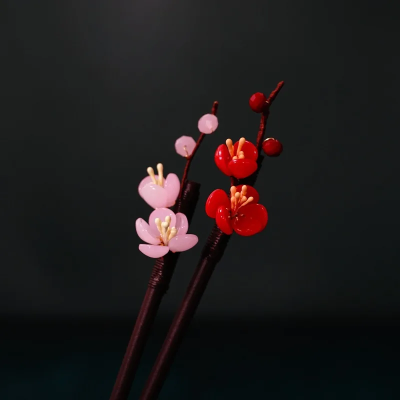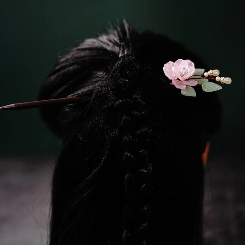Floral Hair Pins Handmade Wooden Twist Bun Pin Chopsticks Flower Hair Clips Chinese-style Hair Stick