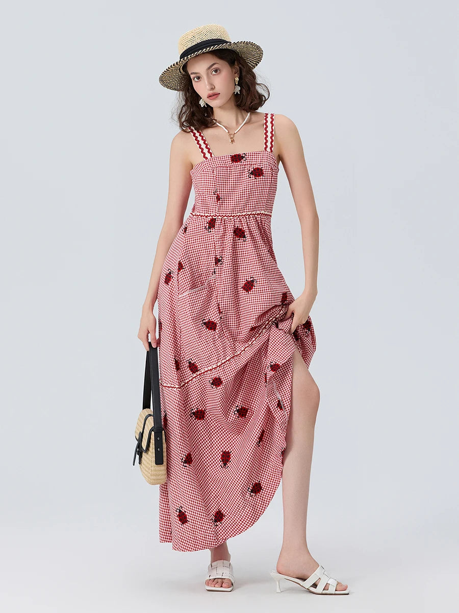 Floral Print Maxi Dress with V-Neckline and Adjustable Spaghetti Straps Boho Style