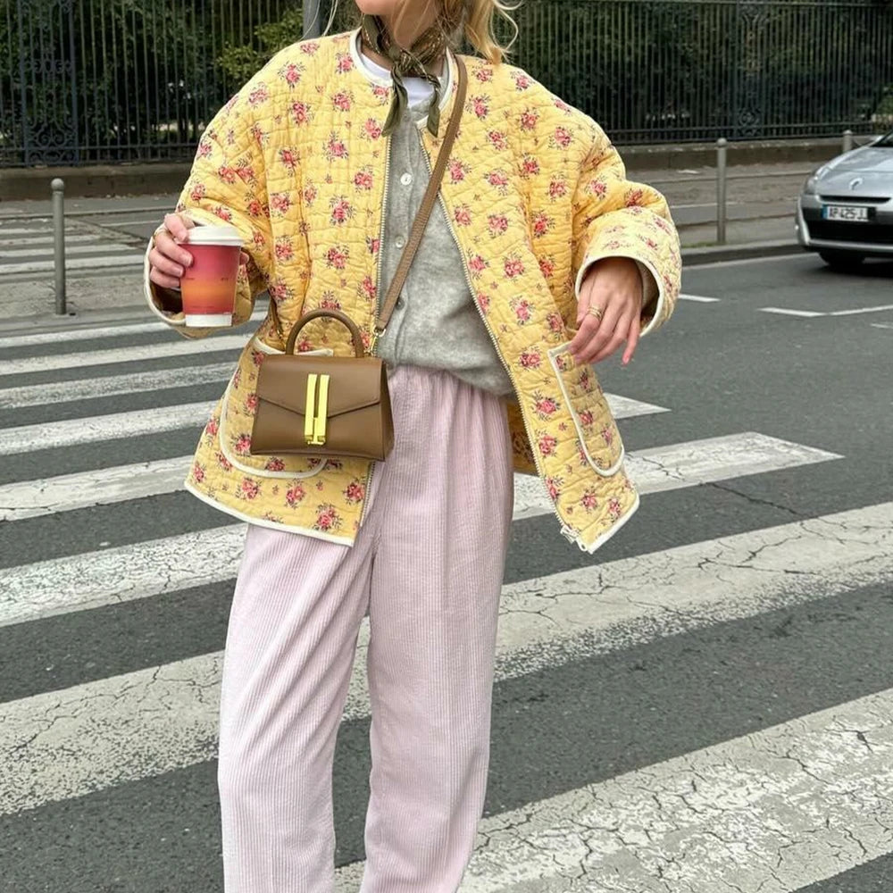 This Floral Quilted Jacket is the perfect mix of comfort and style, making it a versatile addition to your wardrobe. This Floral Quilted Jacket is ideal for those looking for a chic yet functional piece to keep you cozy and stylish throughout the day. Whether you're heading out for a casual outing or running errands, this jacket has you covered.