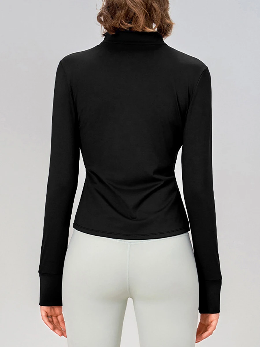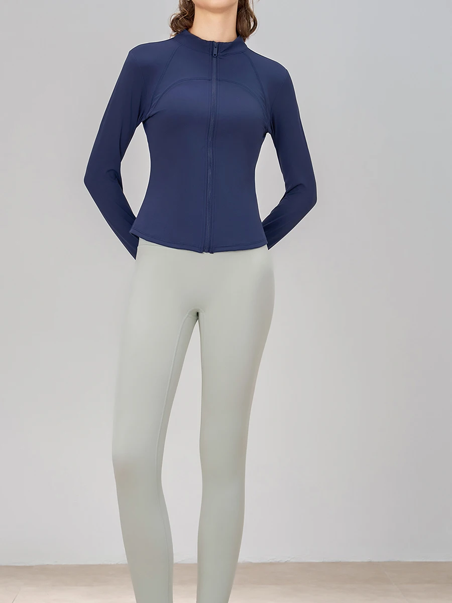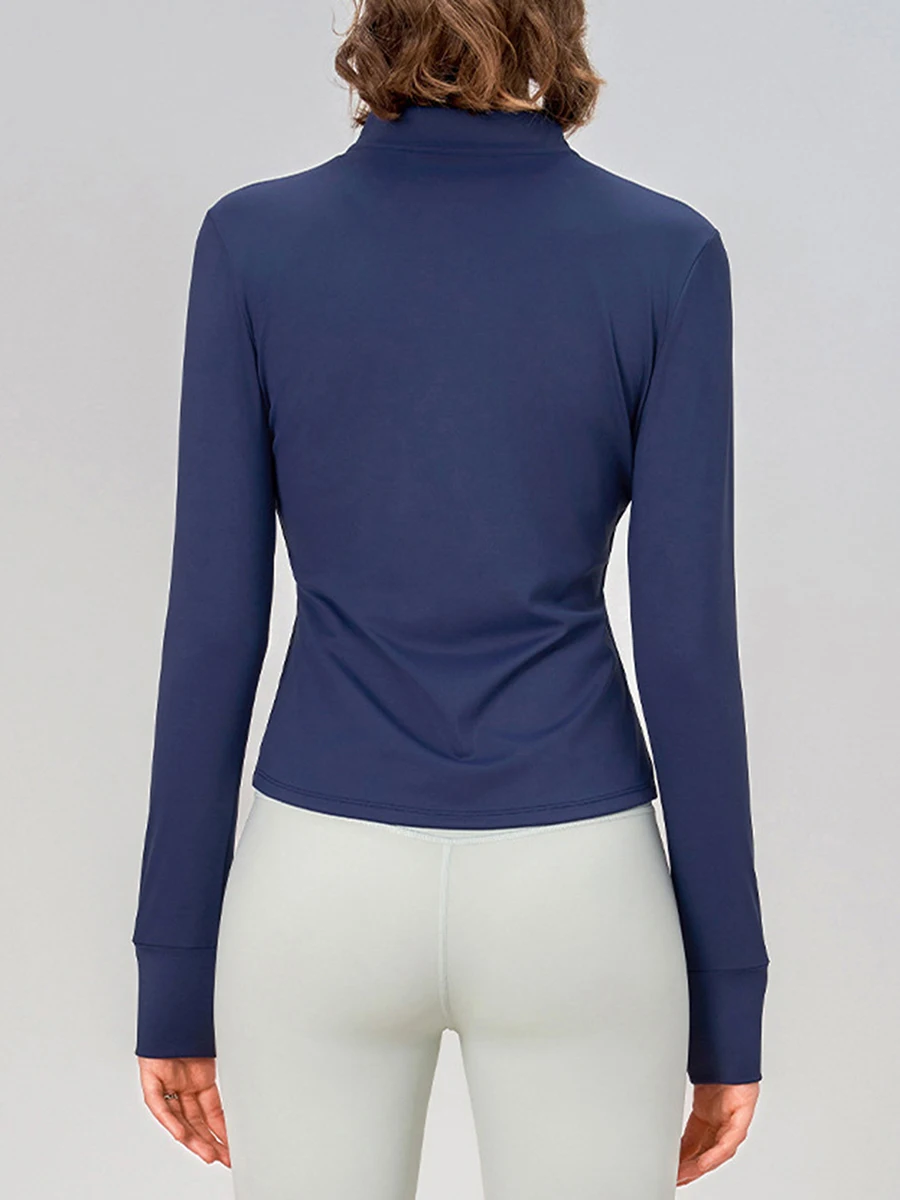 Full Zip Yoga Jacket with Solid Color Long Sleeves Stand Collar Fit and Thumb Holes for Active Wear